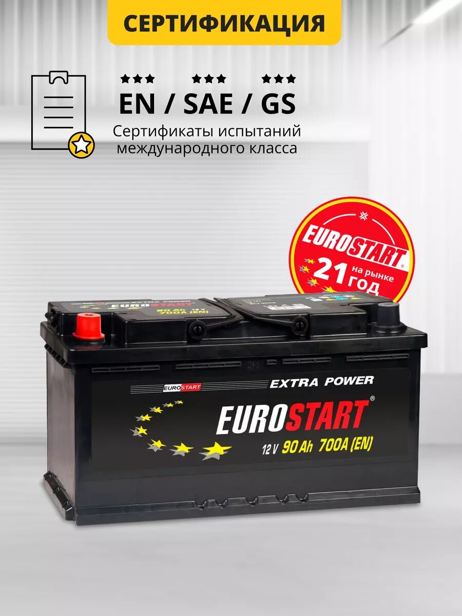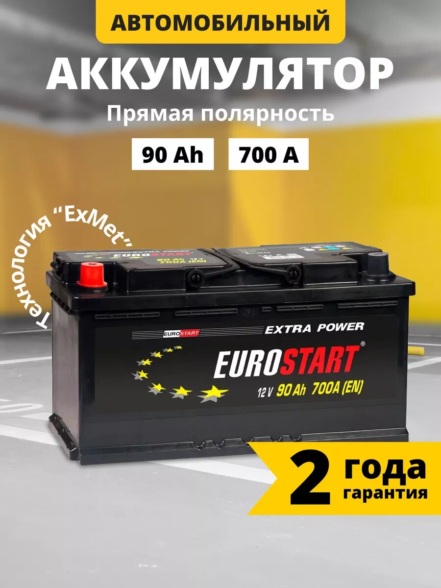 Купить Аккумулятор автомобильный EUROSTART Extra Power 90 Ah 700 A прямая полярность 353x175x190