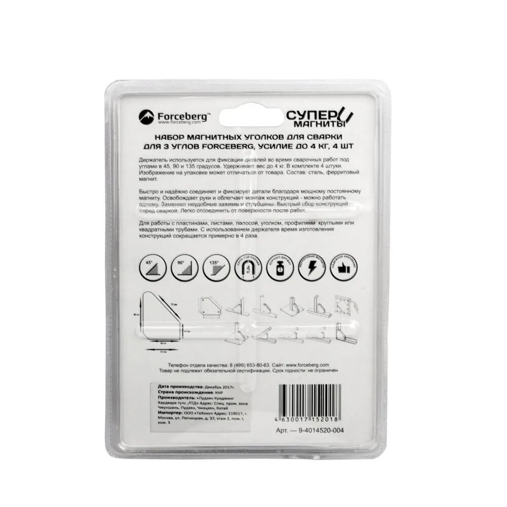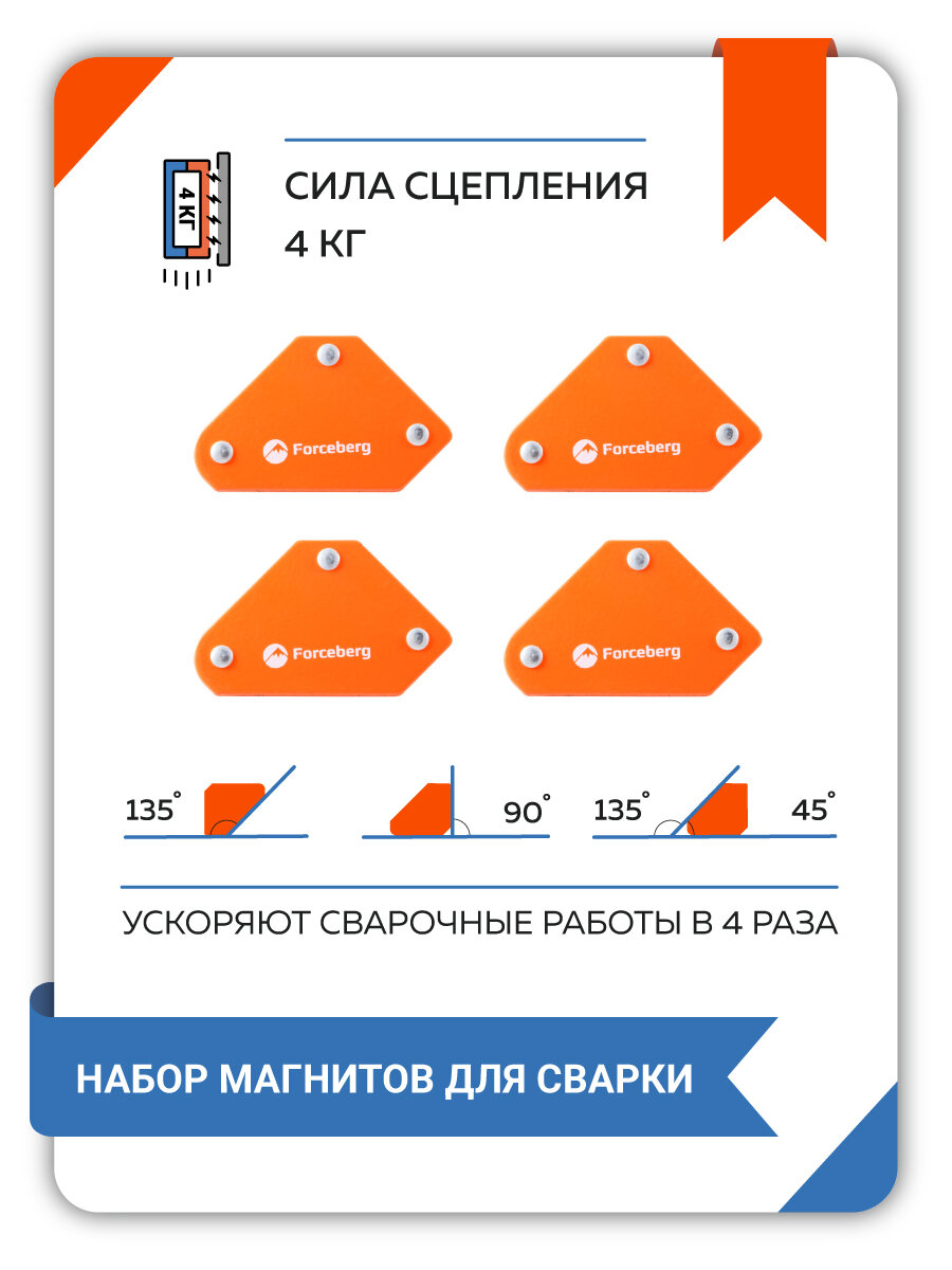 Forceberg Набор магнитных уголков для сварки для 3 углов , усилие до 4 кг, 4 шт 9-4014520-004 .