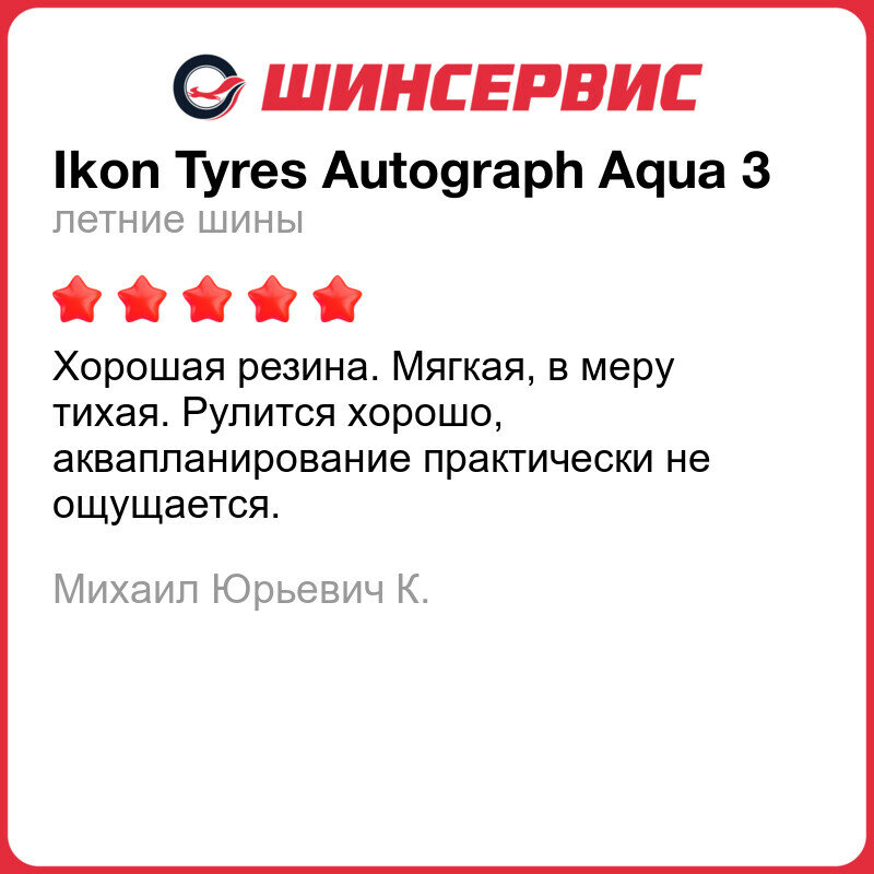 Ниже Вы можете прочитать отзывы на Летняя шина Ikon tyres Autograph Aqua 3 215/50 R17 95V, ознакомится с подробными характеристиками, посмотреть интересные обзоры и фотографии на Летняя шина Ikon tyres Autograph Aqua 3 215/50 R17 95V.