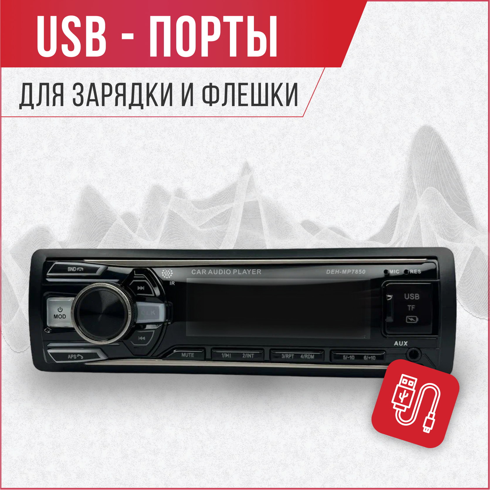 СохранитьМагнитола автомобильная, автомагнитола 1 дин Pioneer DEH-MP 7850, автомагнитола USB, AUX на передней панели, автомагнитола с блютуз, подсветка интересное: