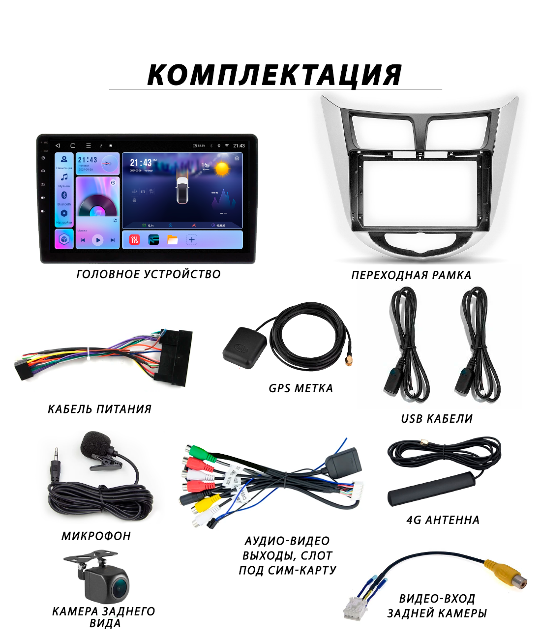 | Подробная комплектация | Головное устройство, переходная рамка 9 дюйм, кабель питания под авто, кабель usb - 2шт, gps-метка, коса rca (аудио-видео выходы), видео-вход камеры заднего вида, камера заднего вида (в подарок). |