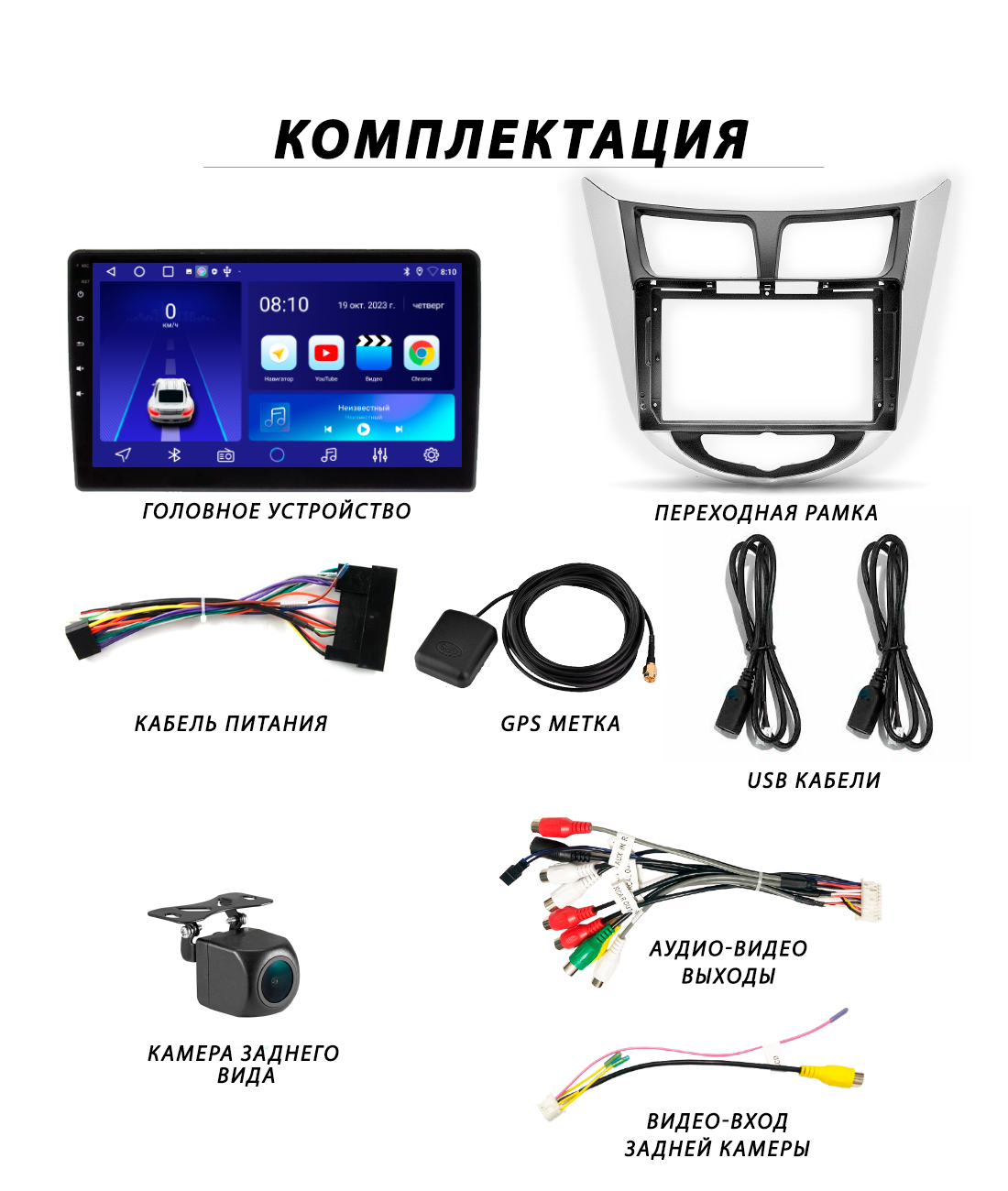 Магнитола Hyundai Solaris 1 (2010-2017) 4Гб+64Гб/серебристо-черная/DSP/Android/Carplay/кулер/Wi-Fi/Bluetooth