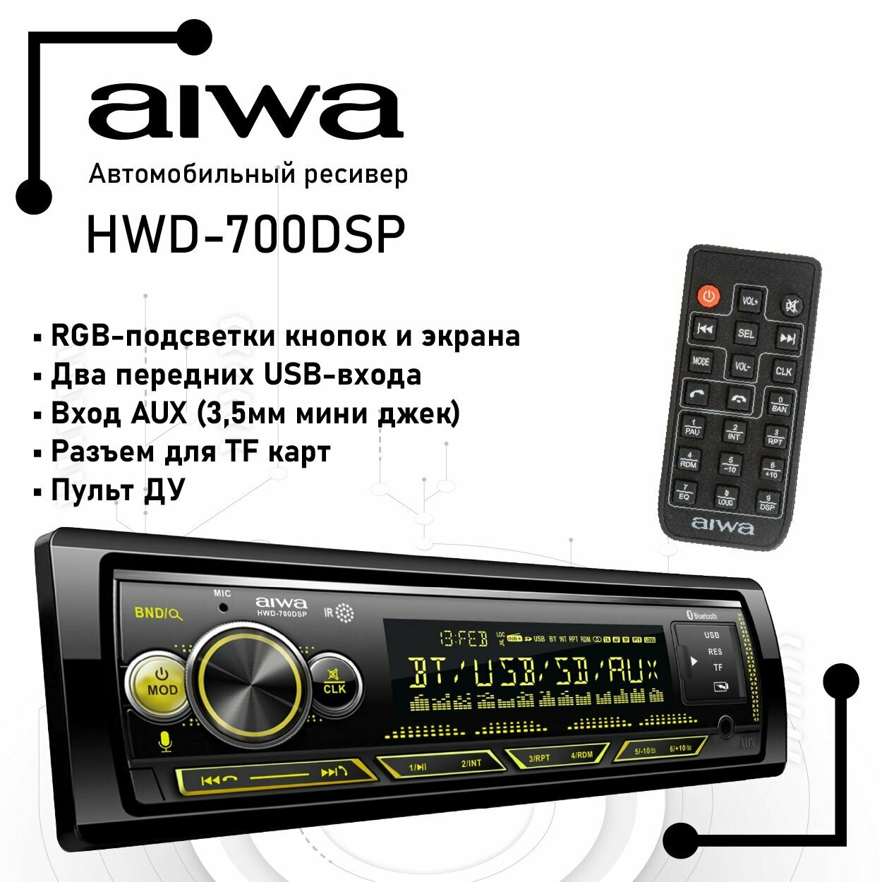 Автомагнитола с Bluetooth AIWA HWD-700DSP, приложение APP для IOS/Android, USB/FM ресивер, пульт управления, ISO разъем интересное:
