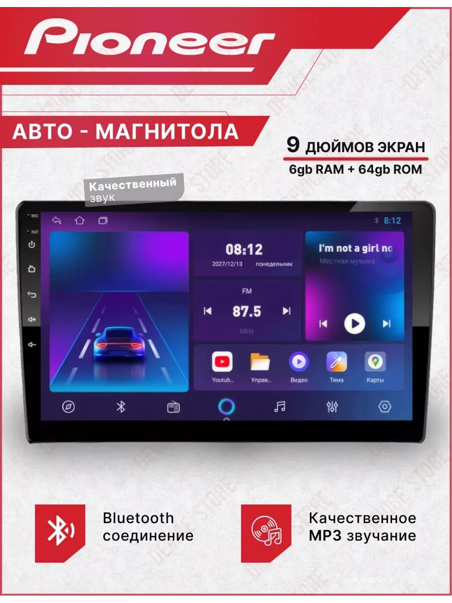 Магнитола автомобильная, автомагнитола 1 дин pioneer CC3 ( 6+64Gb), автомагнитола USB, AUX на передней панели, автомагнитола с блютуз, подсветка