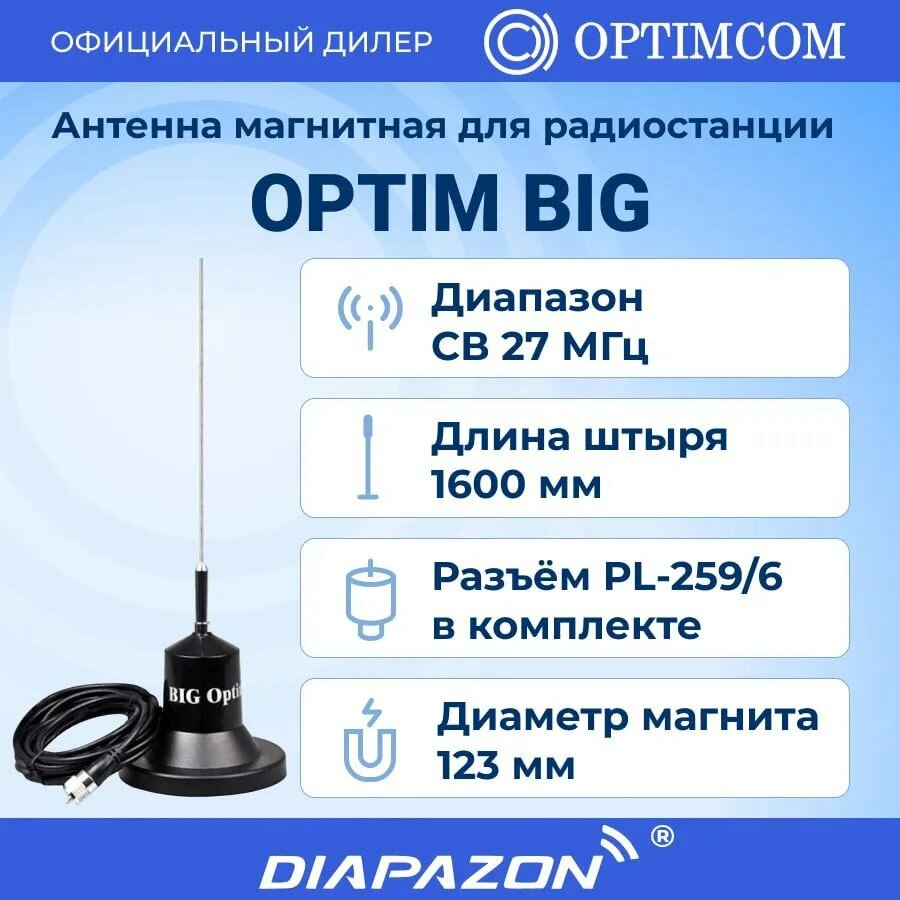 Антенна Для Радиостанции На Магните Стекловолокно Optim Big 1,6 М OPTIMCOM арт. Optim BIG