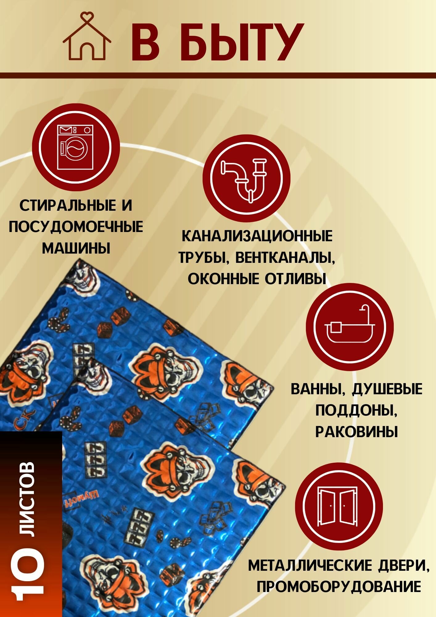СохранитьВиброизоляция Шумофф Супер Джек -10 листов, размер 27см. x 37см, толщина 3,6 мм. Шумоизоляция для автомобиля входных дверей канализационных труб ванн раковин интересное:
