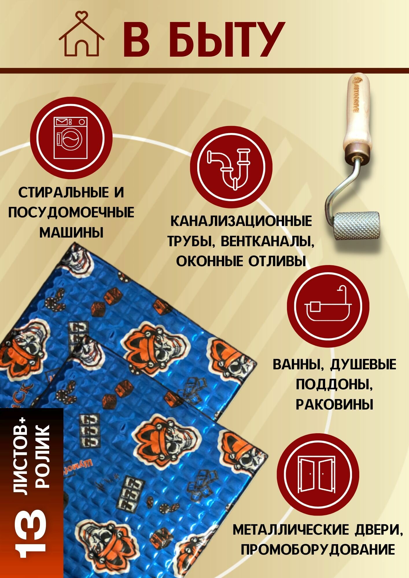 СохранитьВиброизоляция в авто Шумофф Супер Джек - набор 13 листов + ролик прикаточный, размер 27см. x 37см, толщина 3,6 мм. Шумоизоляция для автомобиля входных дверей канализационных труб ванн раковин интересное: