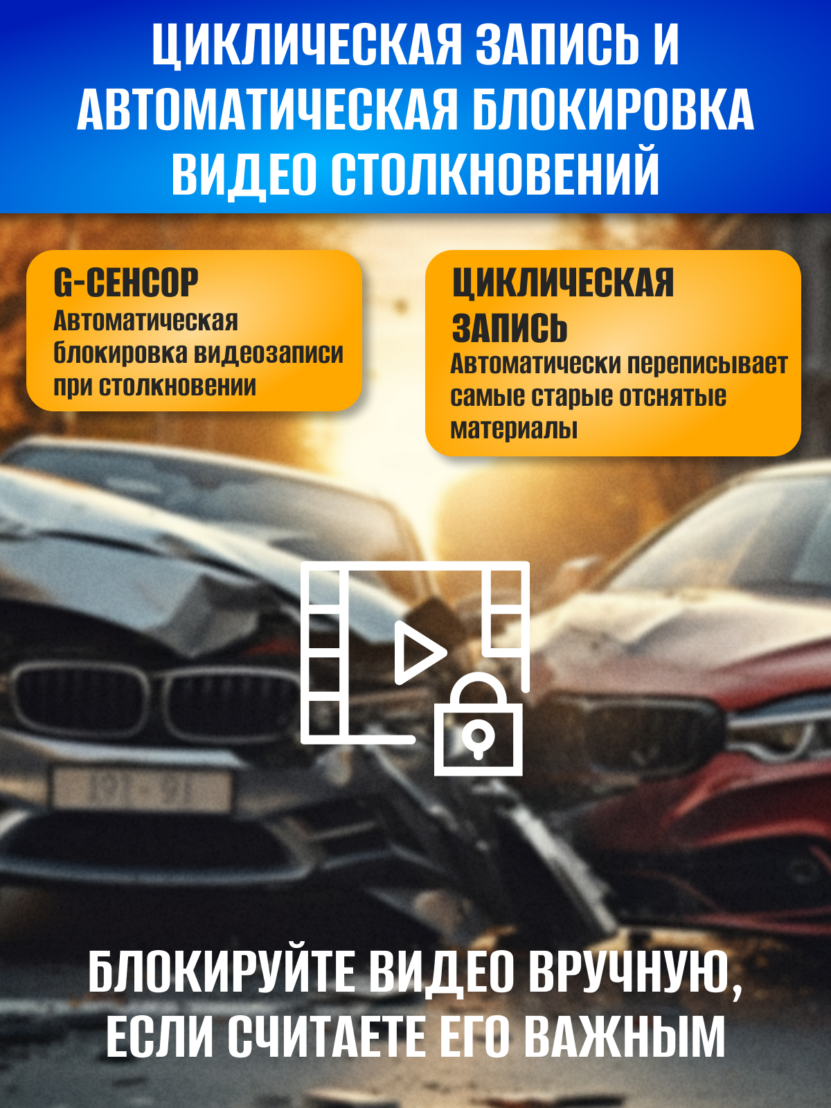 | Дополнительная информация | F2.0, реверсивное изображение, для круглосуточной записи потребуется источник питания. Видеорегистратор - 1 шт.; Крепление - присоска - 1 шт.; Кабель заряда в прикуриватель - 1 шт.; Камера заднего вида с кабелем - 1 шт.; Карта памяти 64 Гб - 1 шт. |