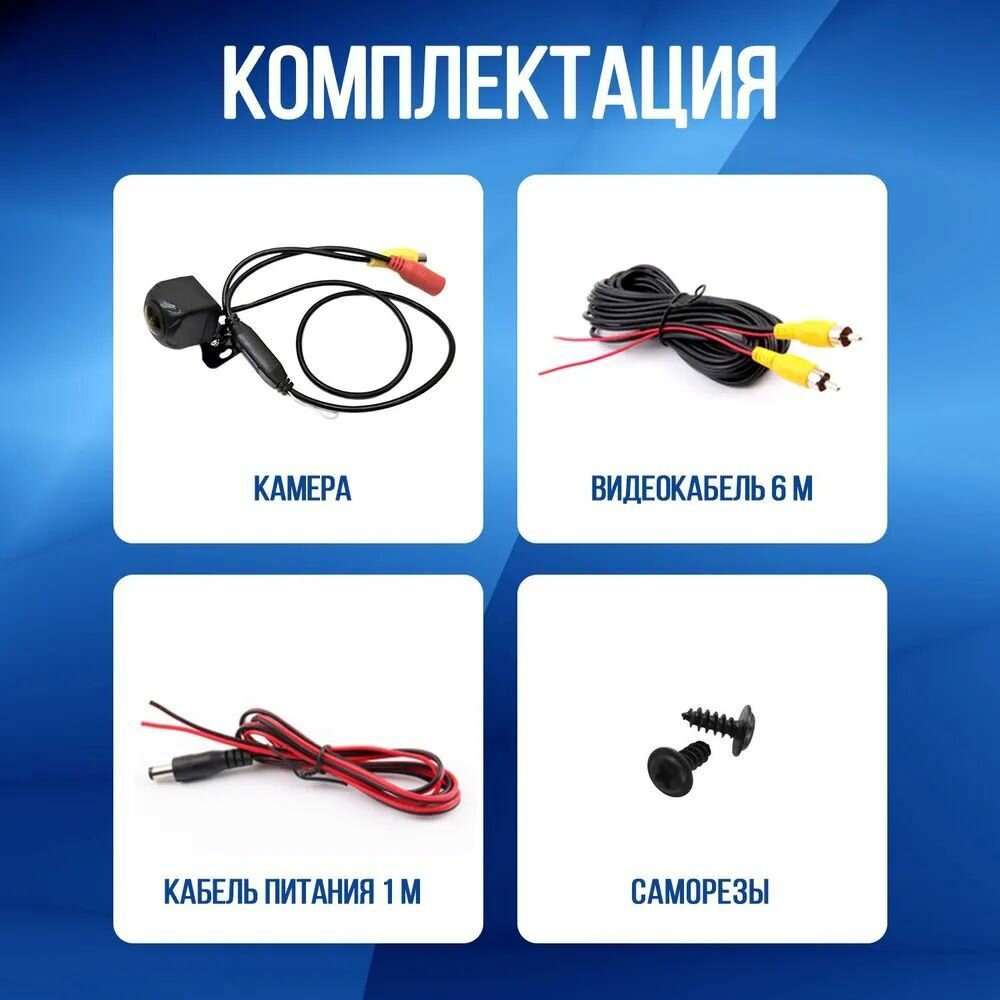 | Подробная комплектация | Регулируемая камера на ножках; Шурупы крепления; Кабель питания длиной 1 м; Видео кабель RCA/RCA 6 метров с управляющим проводом. |