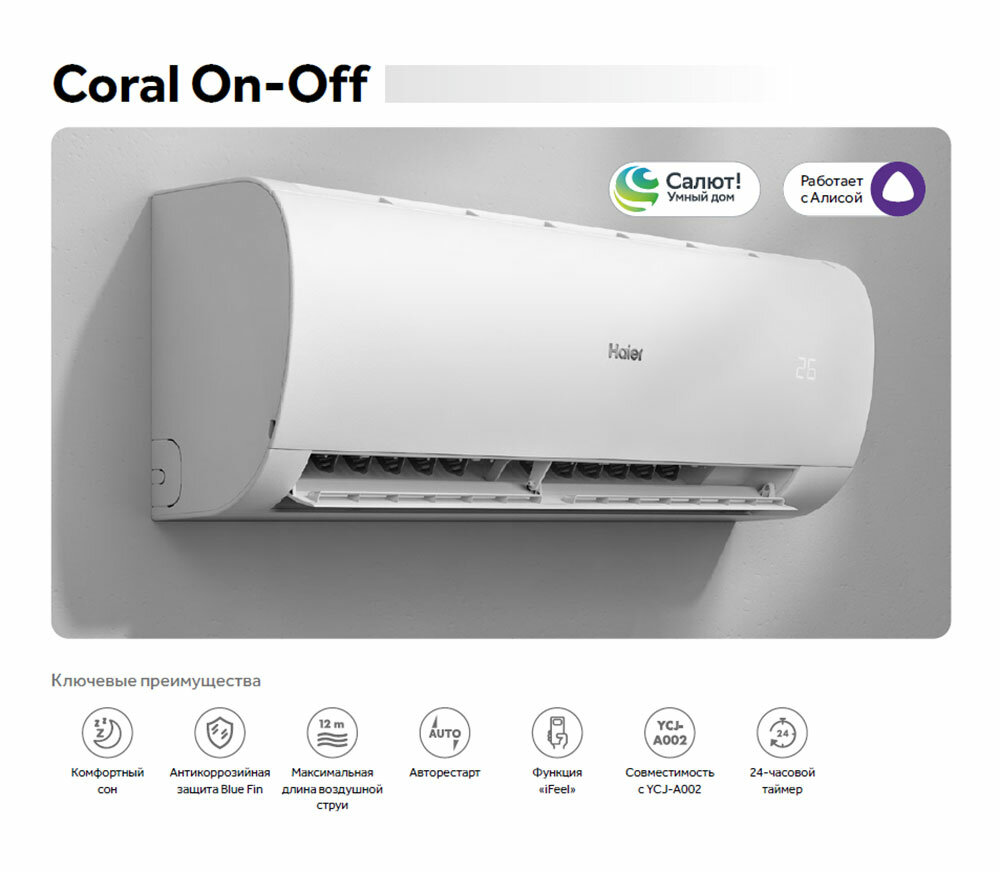 Сплит-система кондиционер HAIER CORAL ON-OFF HSU-12HPL203/R3 до 35м2, Wi-Fi новинка 2024