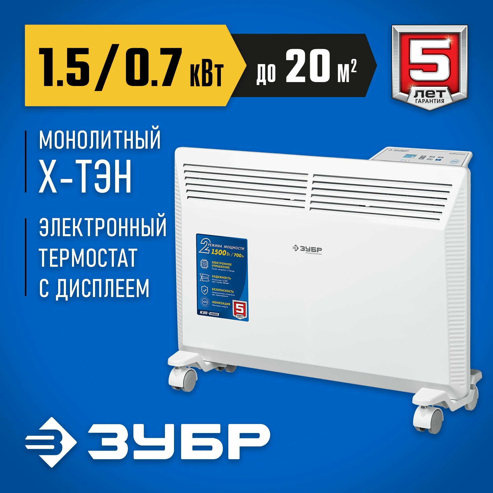 Электрический конвектор про серия, 1.5 кВт ЗУБР Профессионал КЭП-1500
