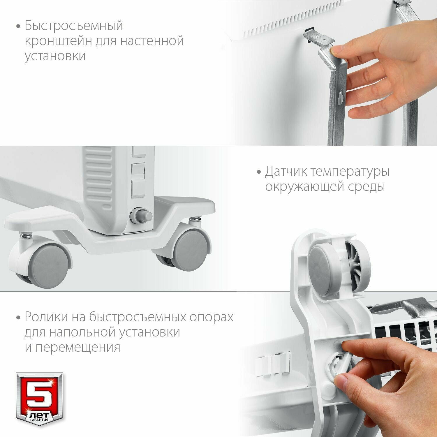 | Подробная комплектация | Конвектор электричческий 1 шт; Крогштейн 1 шт; Ролик 4 шт; Опора 2 шт; Набор крепежа 1 шт; Руководство по эксплуатации 1 шт; |