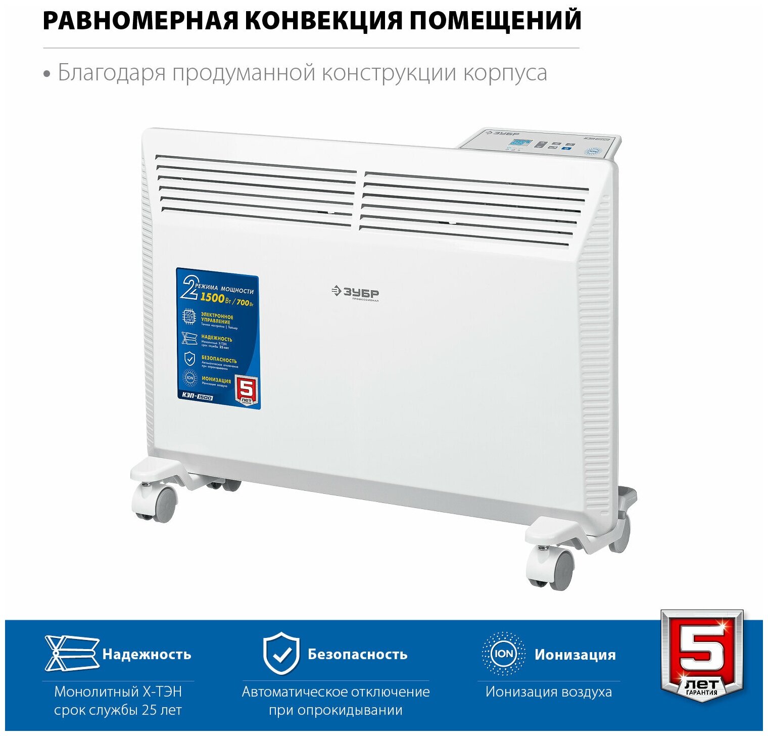 Электрический конвектор про серия, 1.5 кВт ЗУБР Профессионал КЭП-1500