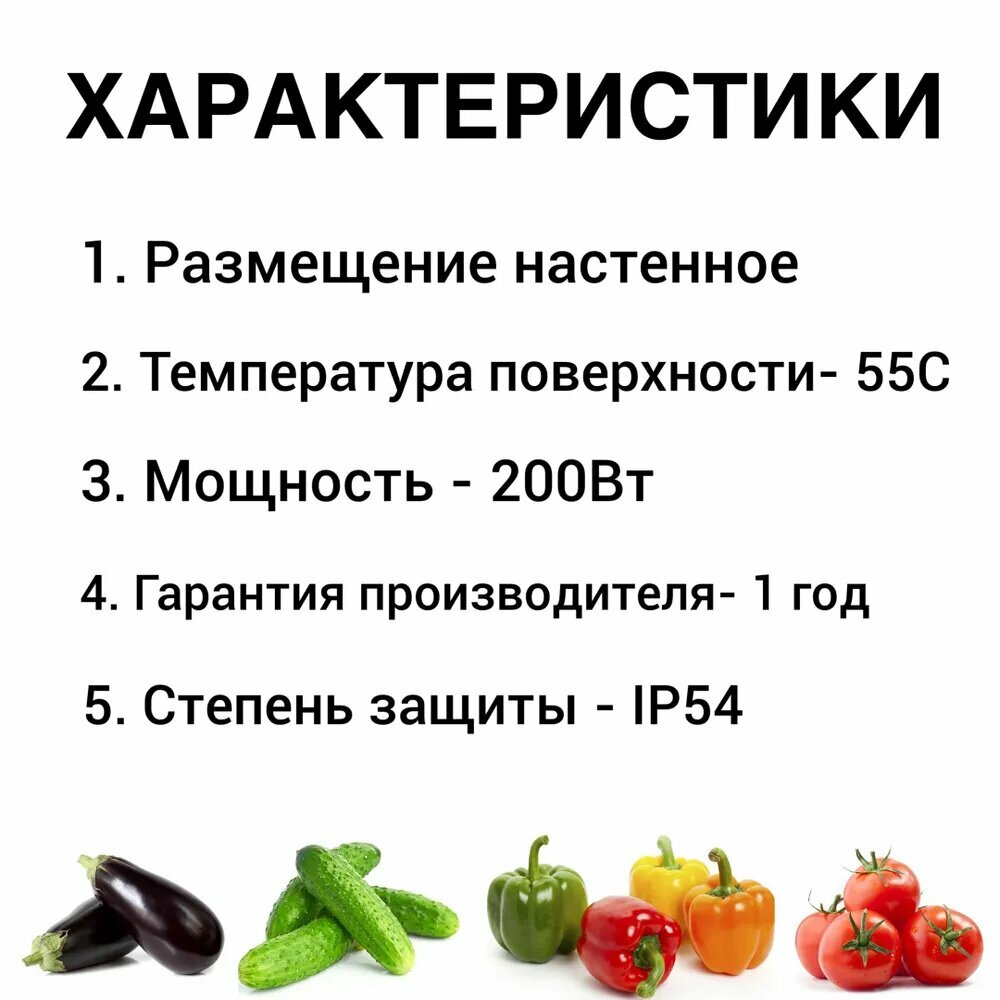 | Подробная комплектация | Обогреватель тепличный, шнур с вилкой |