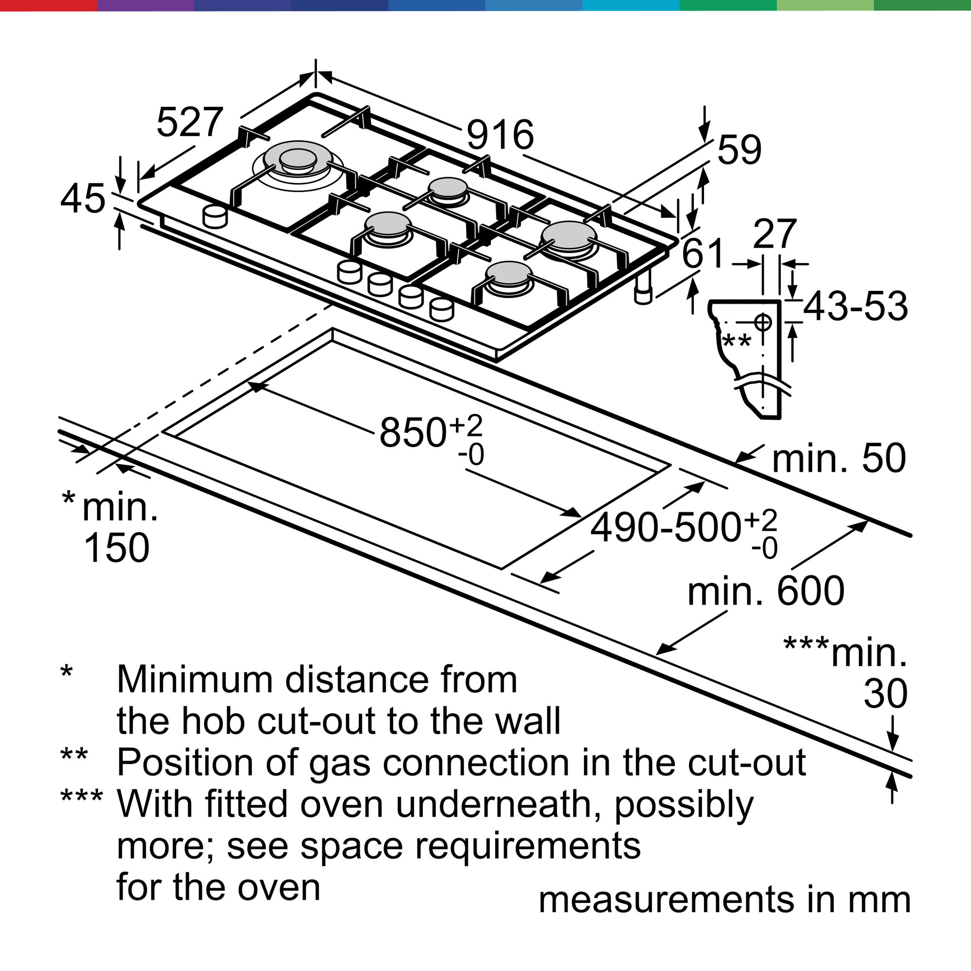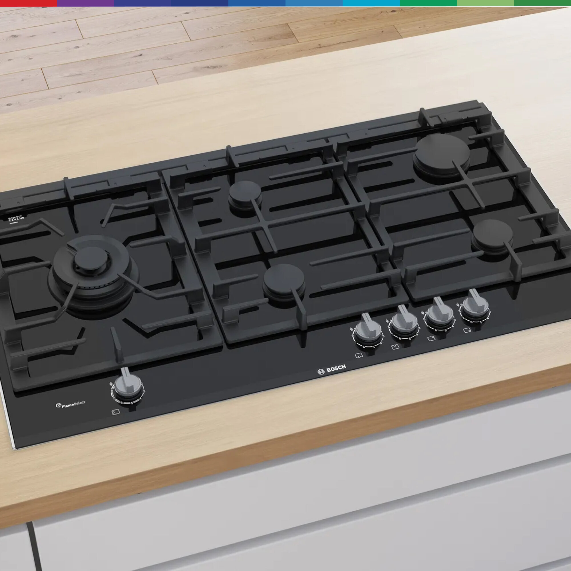 Купить Газовая варочная поверхность Bosch PRS9A6D70M, 5 конфорок , закаленное стекло, электроподжиг, газ-контроль, черный