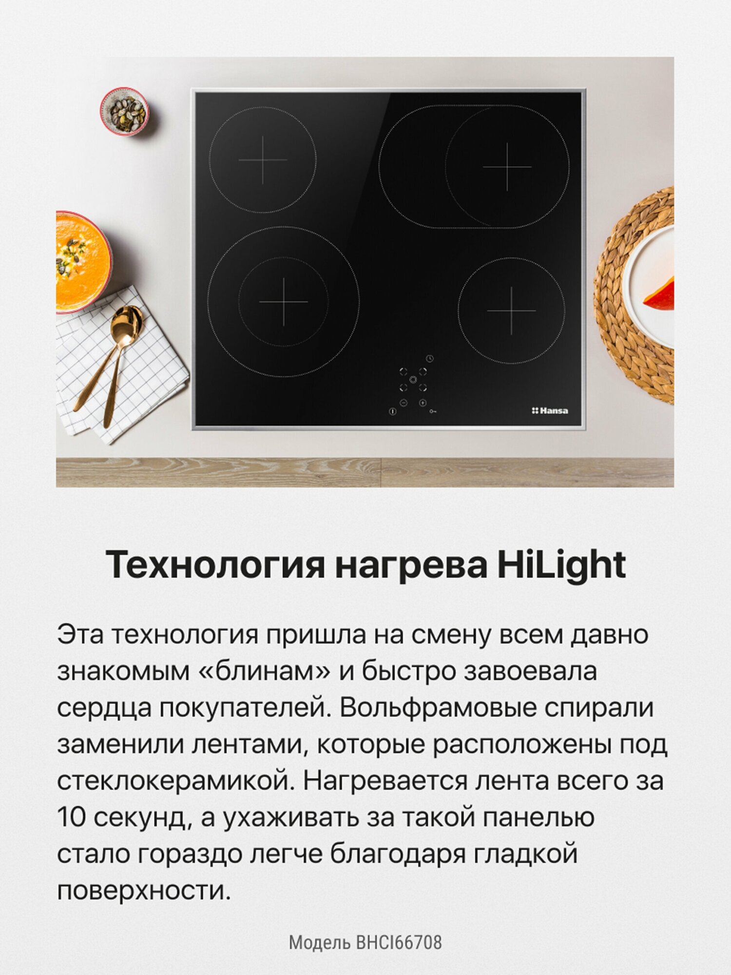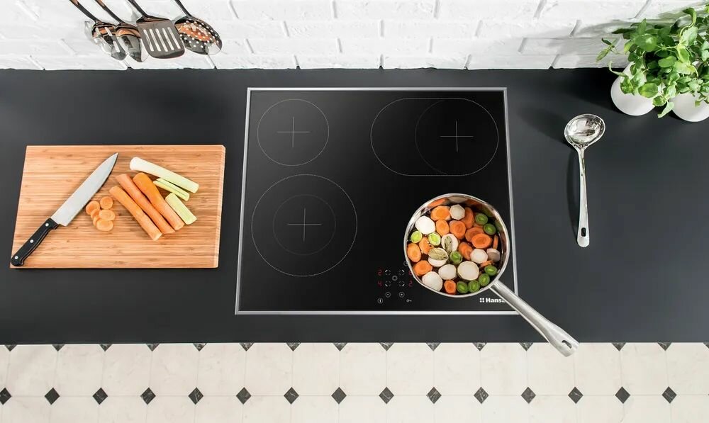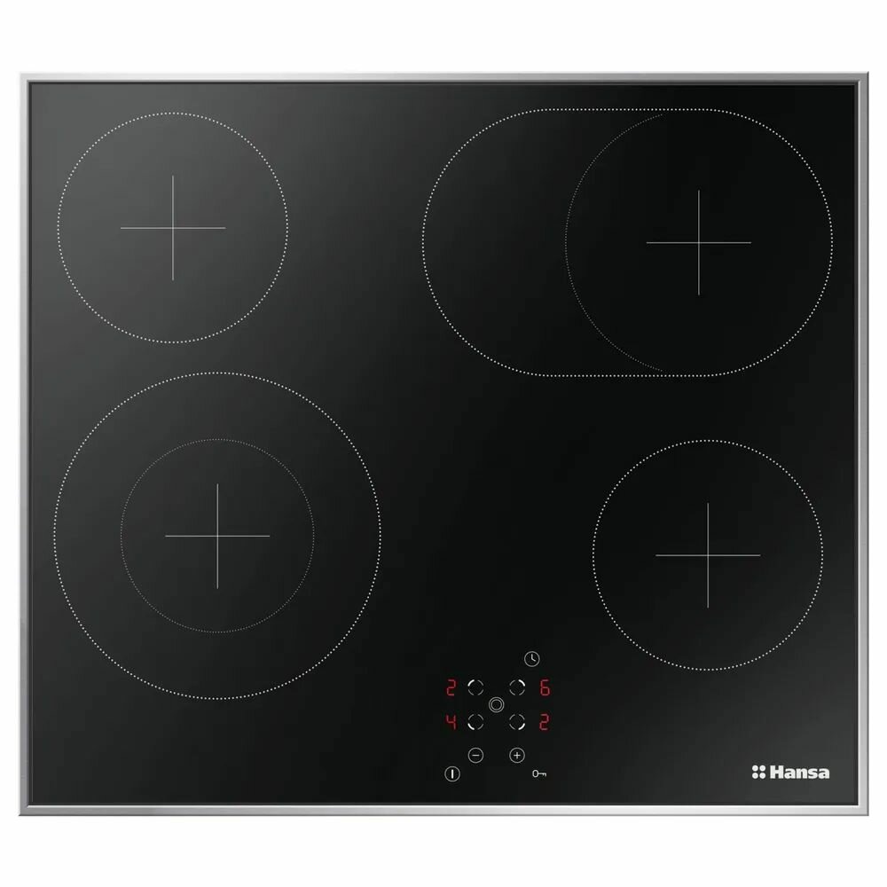 Электрическая варочная панель Hansa BHCI66708, встраиваемая, 60 см, быстрый нагрев за 10 сек., автоматика закипания, таймер автоматического отключения, стеклокерамика с сенсорным управлением