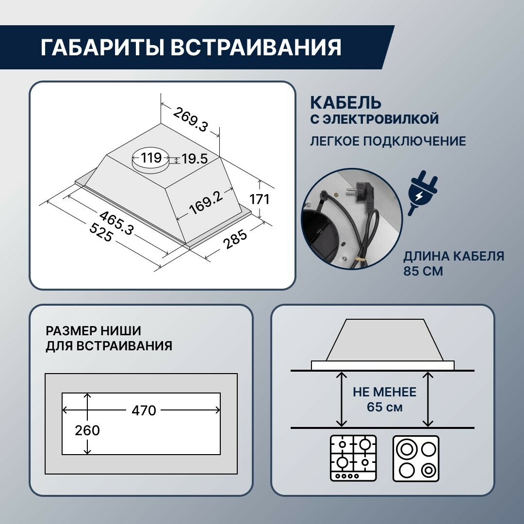 | Диаметр патрубка воздуховода | 120 мм |