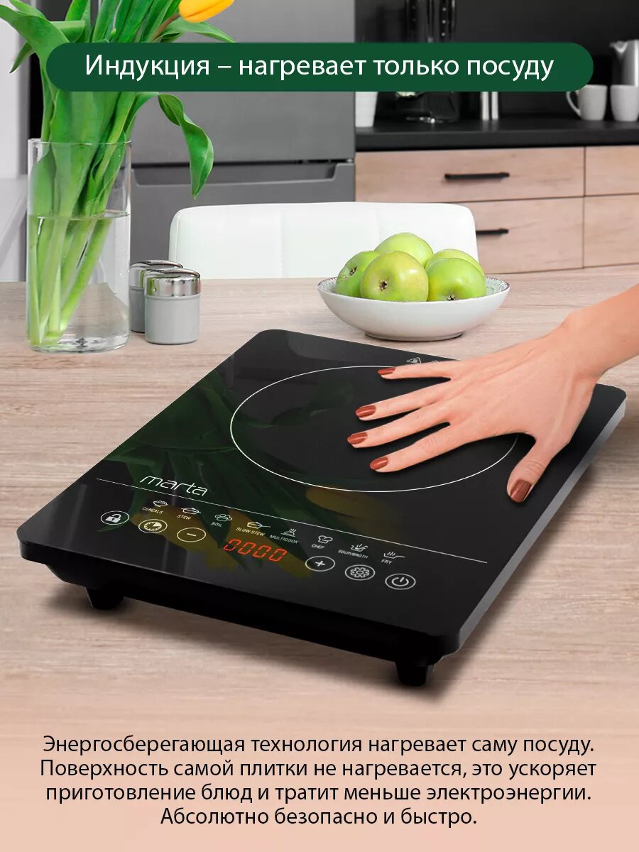 Плита индукционная электрическая MARTA MT-4217 безимпульсная черный жемчуг интересное: