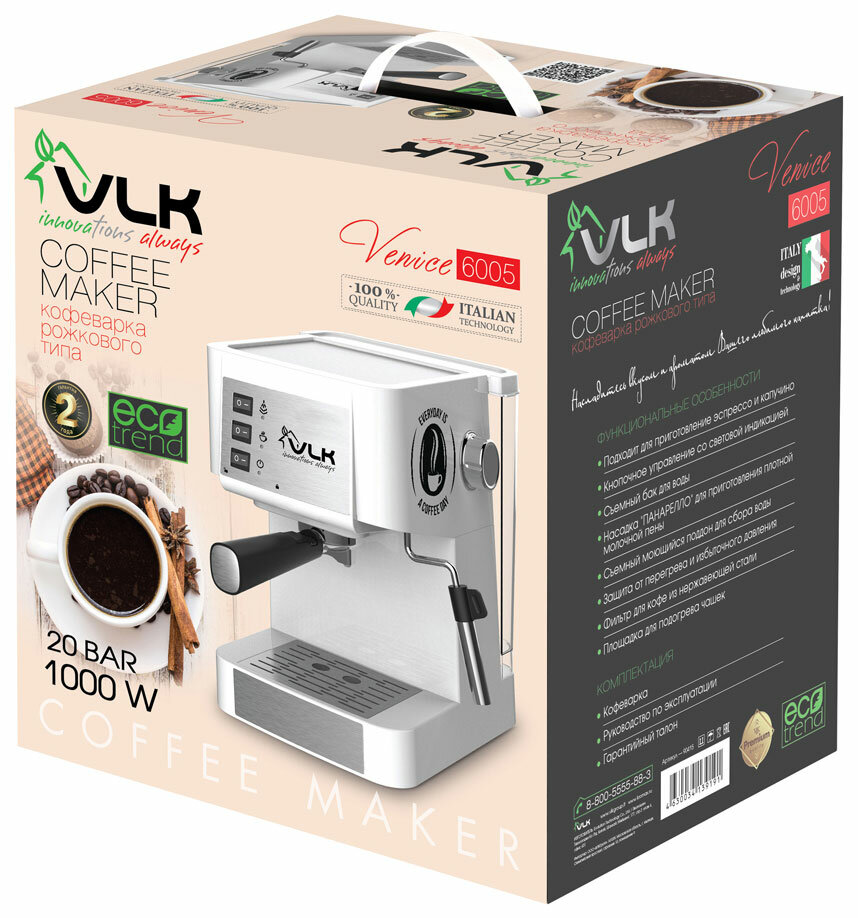 Кофеварка рожковая VLK VENICE-6005 / 1000 Вт / 20 Бар / 1,5л