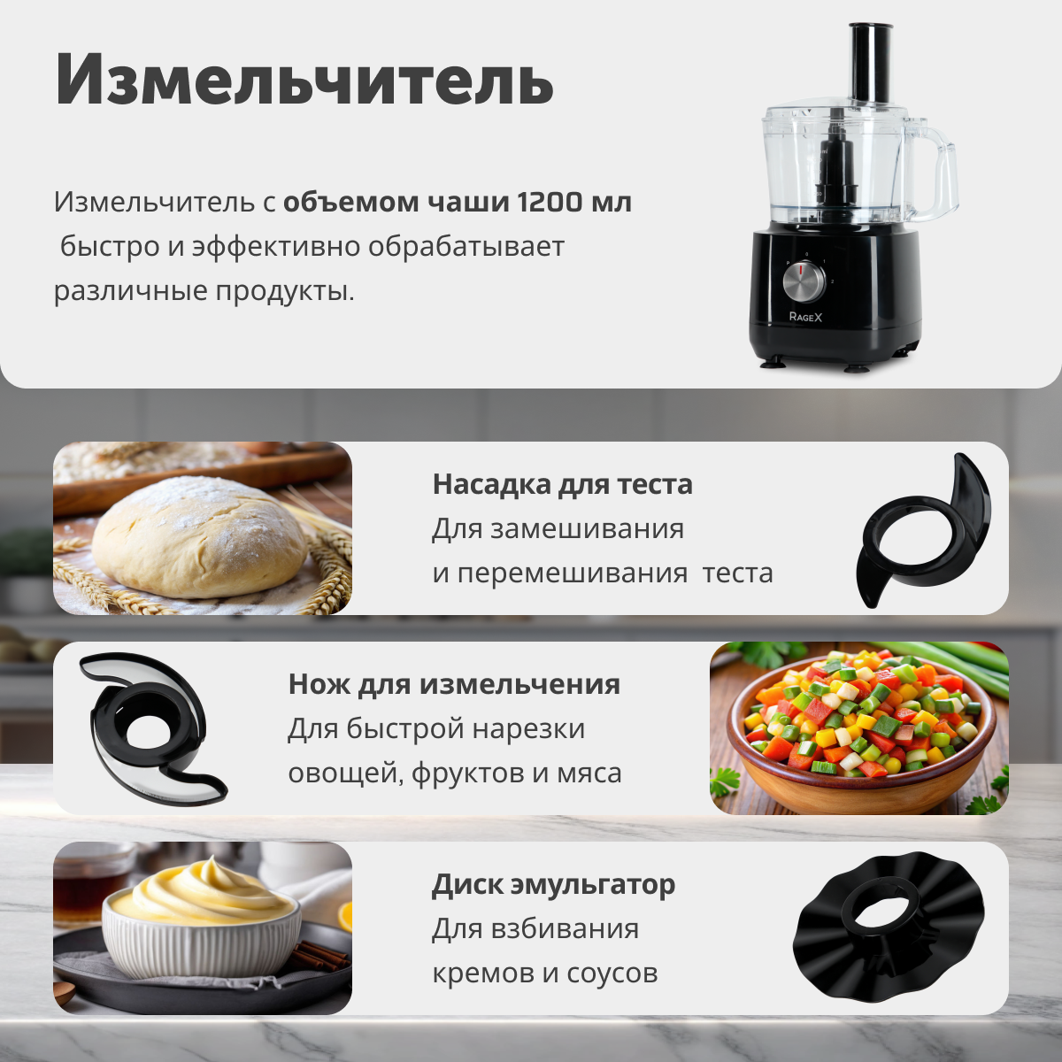 Купить Кухонный комбайн 12 в 1, объем 1.2 литра, 2 скорости, мощность 1000 Вт, черный