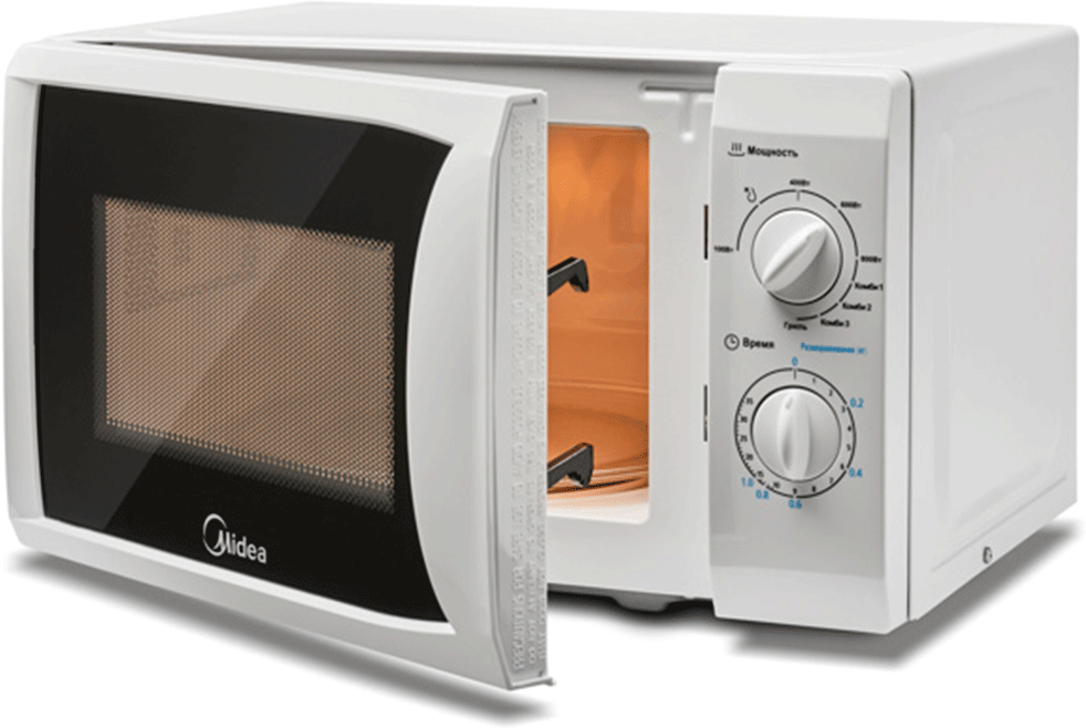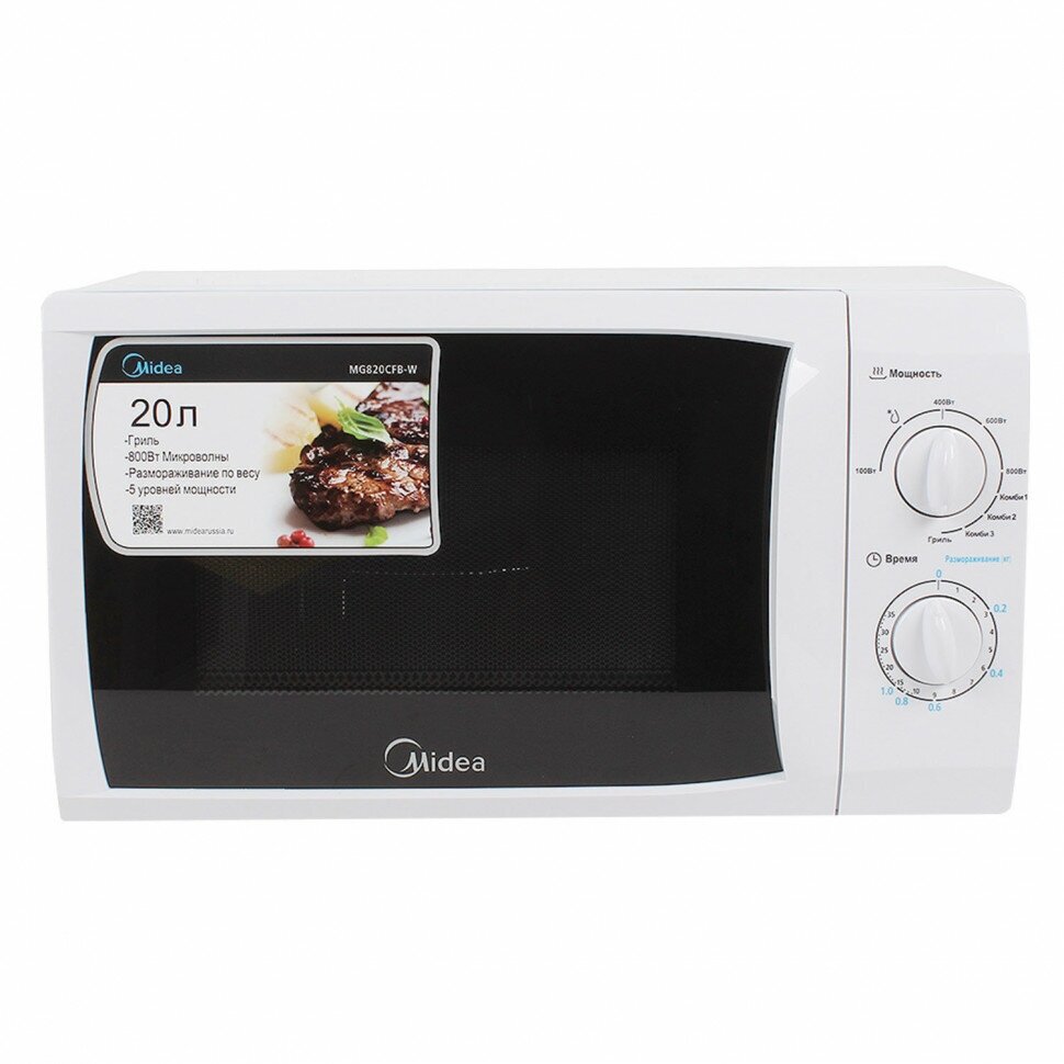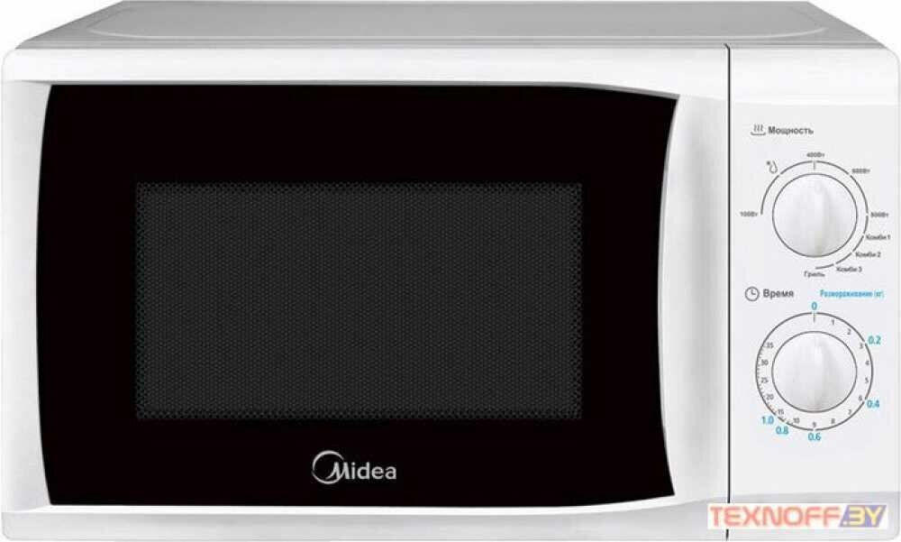 Микроволновая печь MIDEA MG820CFB-W, объем 20 л, мощность 800/1000 Вт, механическое управление, гриль, белая интересное: