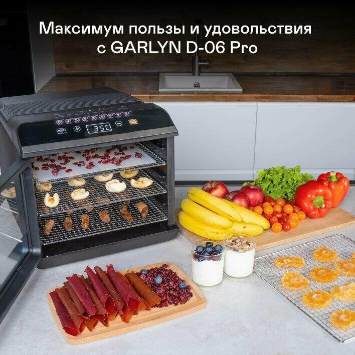 Сушилка электрическая для овощей и фруктов GARLYN D-06 Pro, черный интересное: