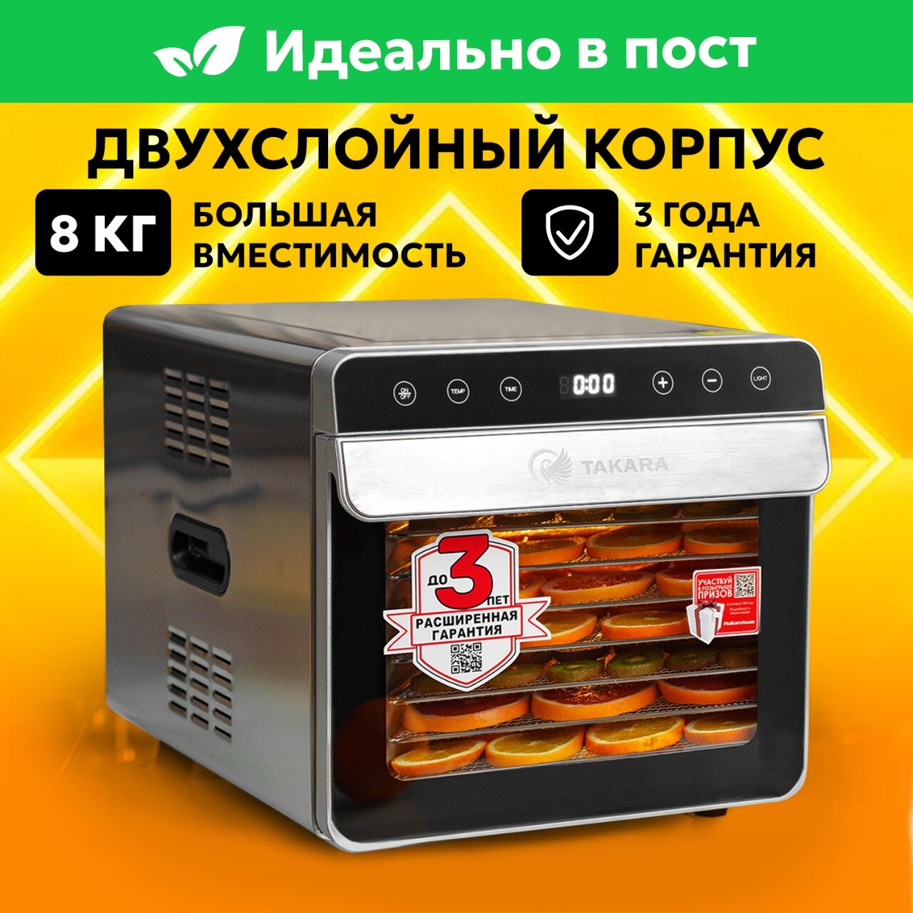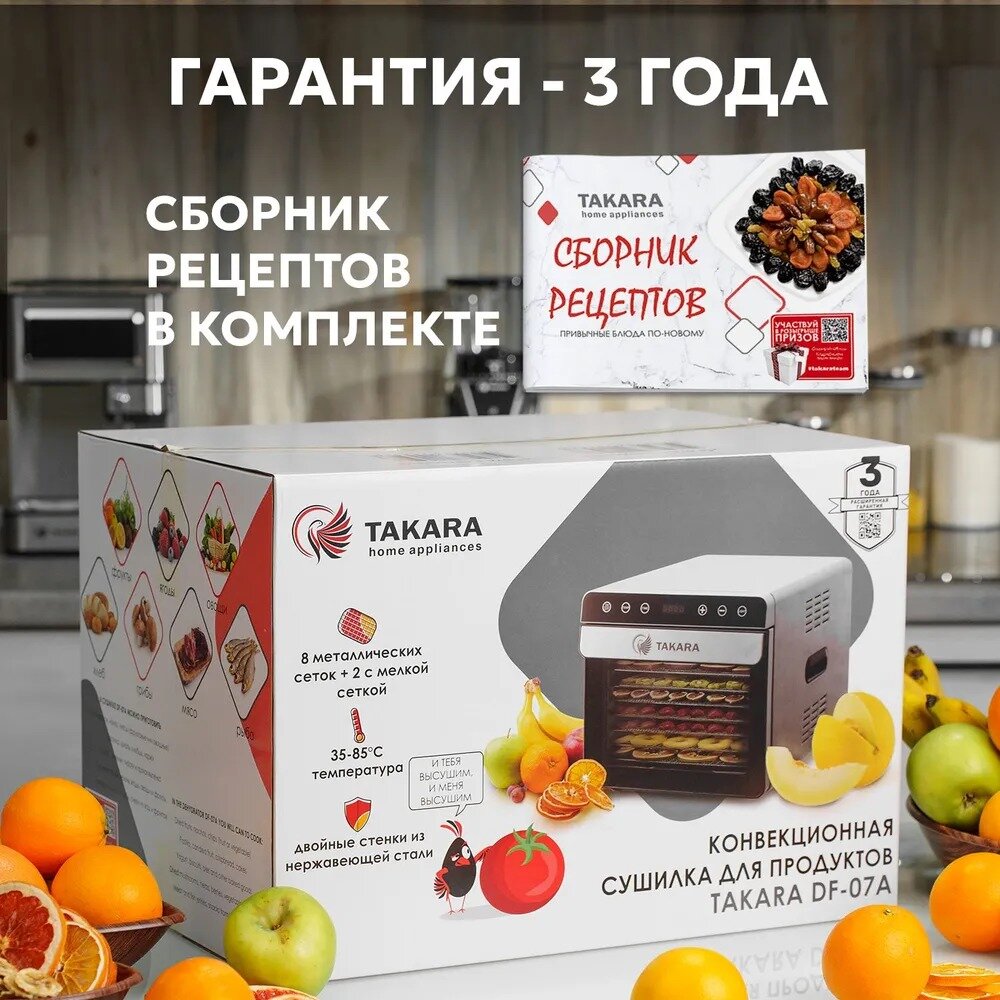 Сушилка Takara DF-07А для овощей и фруктов, в двухслойном корпусе из нержавеющей стали интересное: