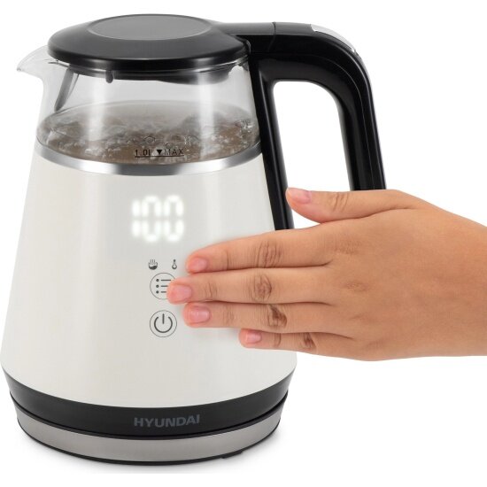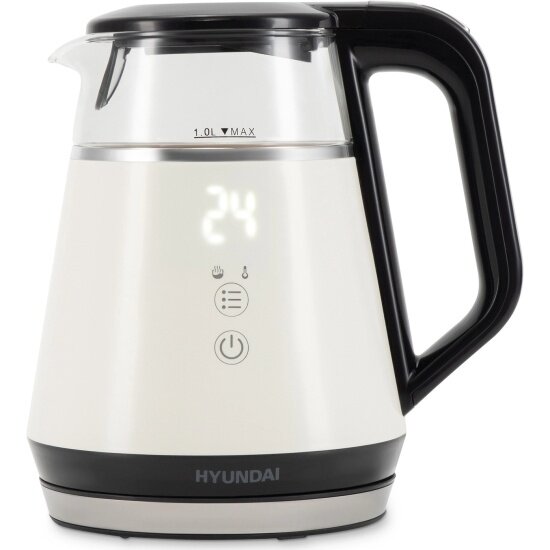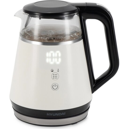 Чайник Hyundai HYK-G3013 1.0 л. 1100Вт белый/черный (стекло)