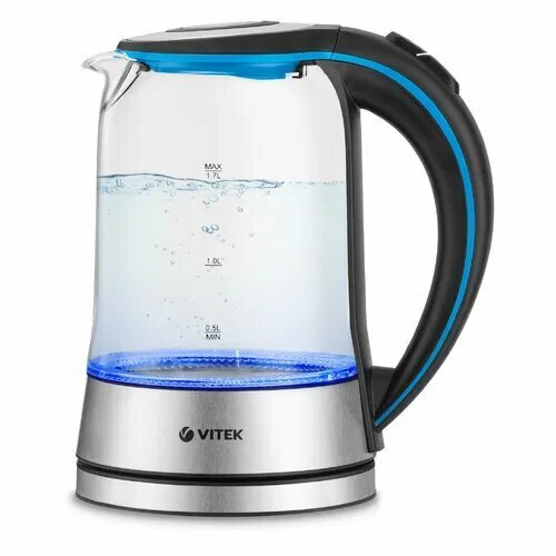 Чайник электрический Vitek VT-7028, 1,7 л, 2200 Вт, серебристый/черный интересное: