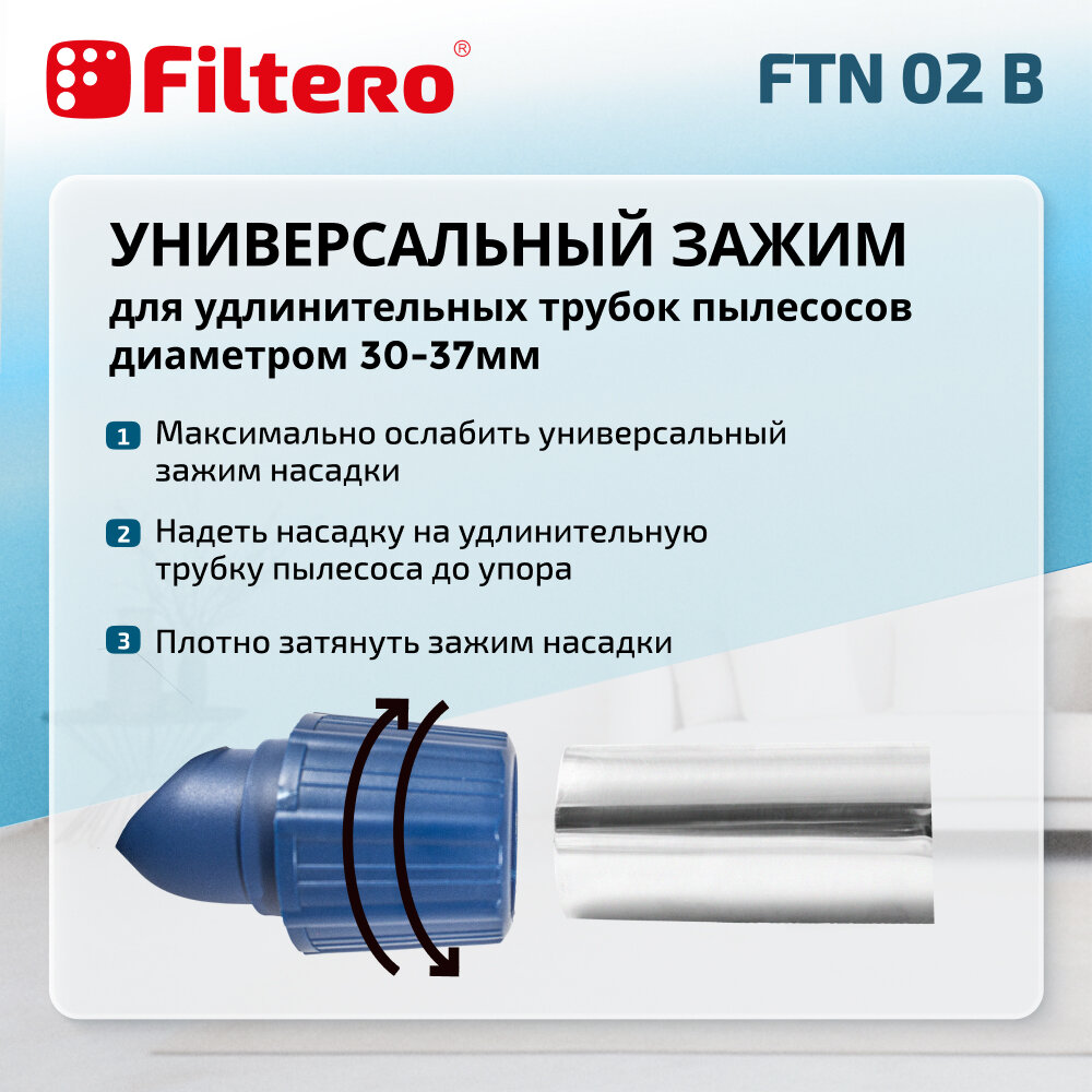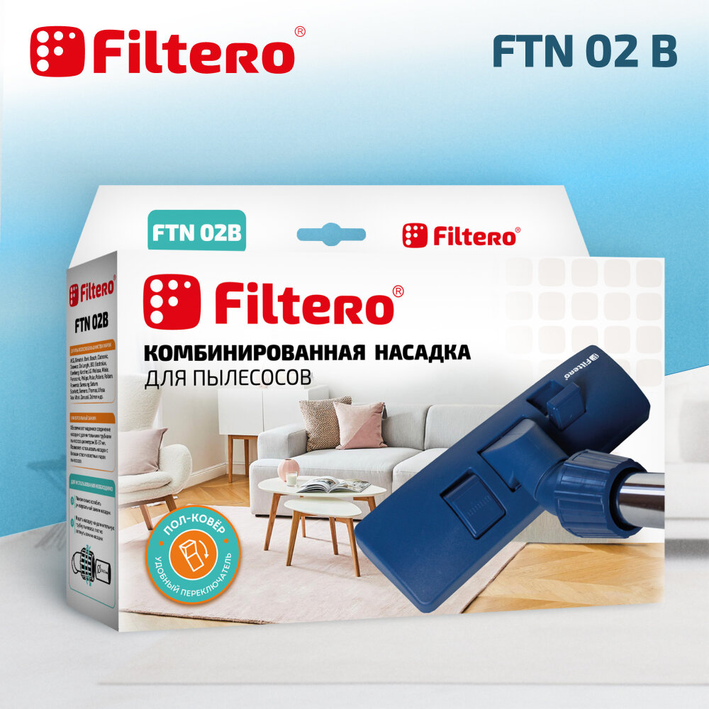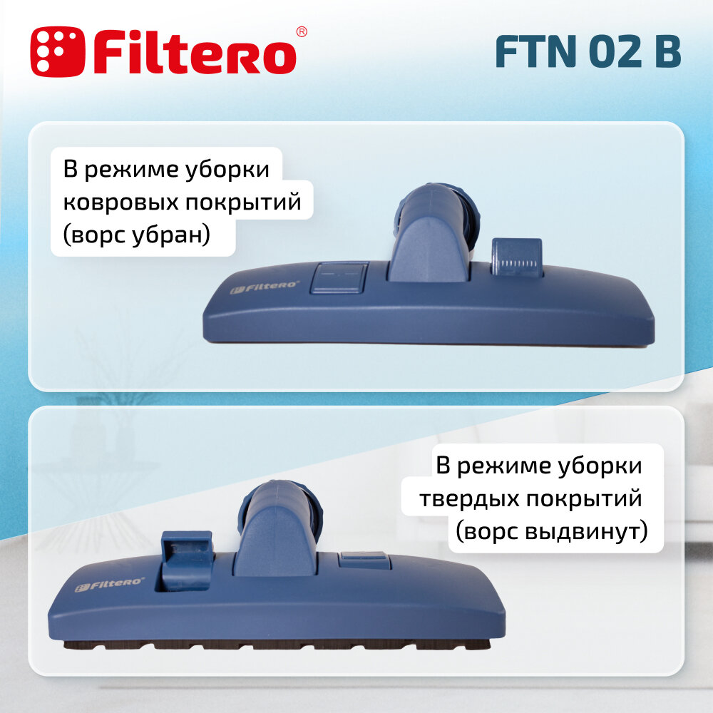 Насадка для пылесоса универсальная, комбинированная, пол/ковер, цвет синий - Filtero FTN 02 B интересное: