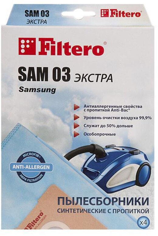 Мешки-пылесборники Filtero SAM 03 Экстра, для пылесосов Samsung, синтетические, 4 штуки