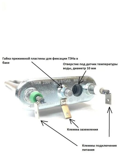 Тэн C00094715 для стиральной машины Indesit, Ariston, Samsung, LG, Haier 1700W прямой с отверстием TW интересное: