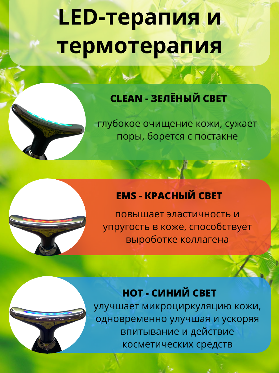 | Принцип работы | микротоки / миостимуляция / нагрев / светотерапия |