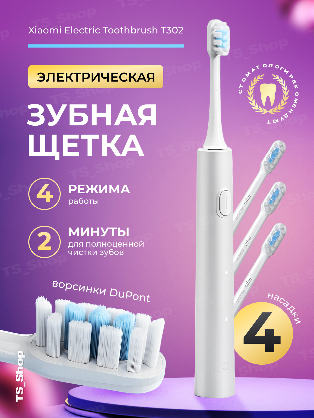 Электрическая зубная щётка Xiaomi Mijia Toothbrush T302 (MES608) с 4 насадками, Цвет: серебристый, Жесткость: средняя