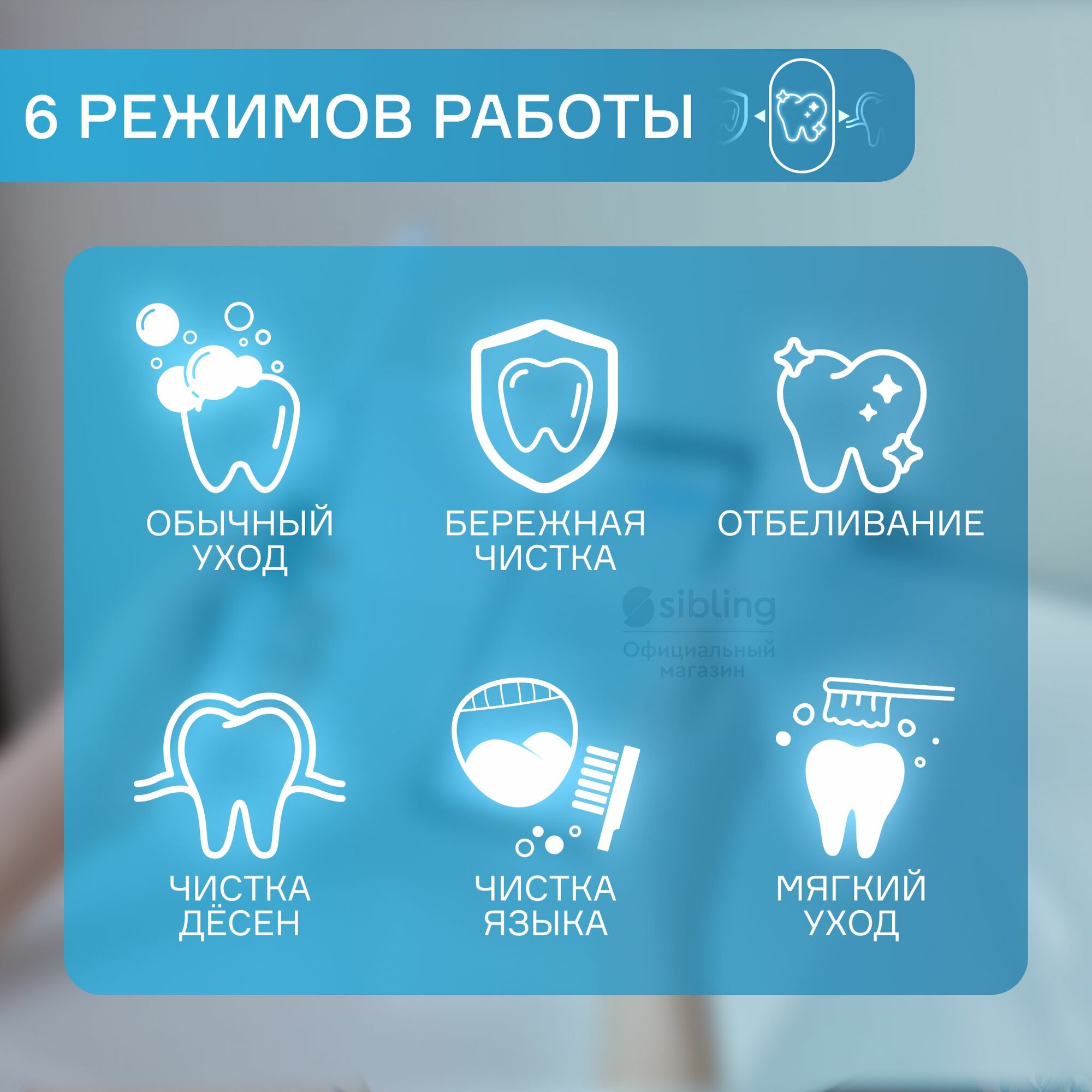 | Режимы | деликатная чистка, ежедневная чистка, массаж, отбеливание, уход за деснами, чистка языка |