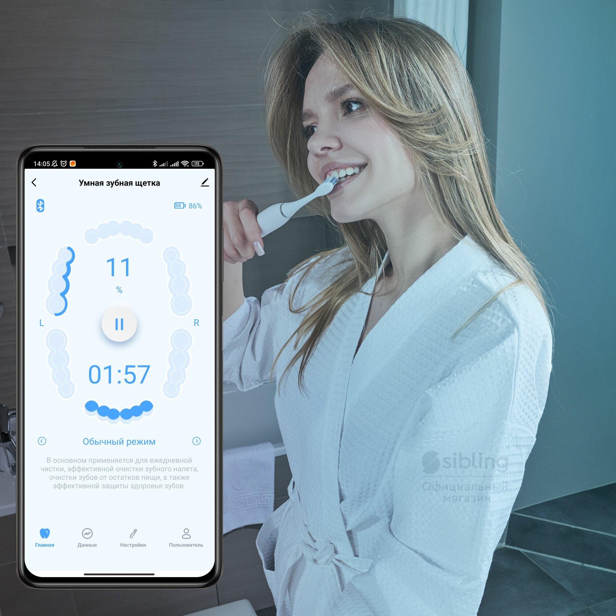 СохранитьУмная ультразвуковая электрическая зубная щетка Sibling Powerbrush-FW белая, для взрослых, 6 режимов работы, 2 насадки интересное: