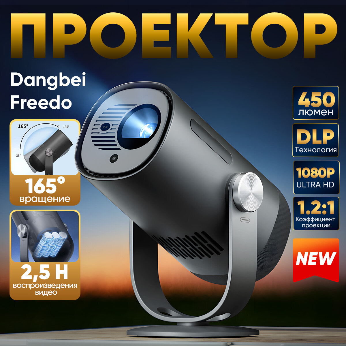 Купить Проектор Dangbei Freedo 1080P с подставкой, DLP,450 ISO-люмен, черный