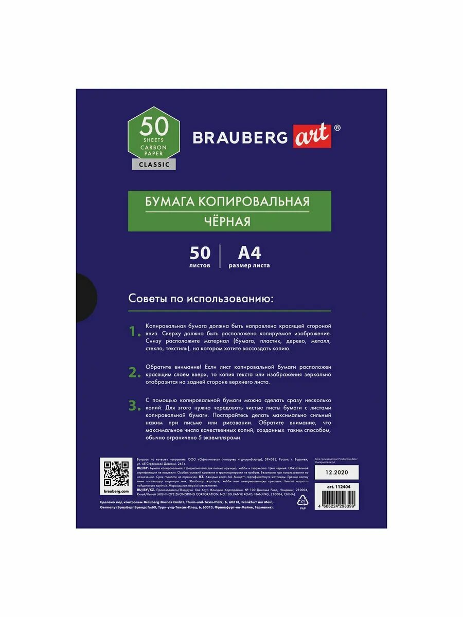 Бумага копировальная Brauberg Art Classic, формат А4, черная, пачка 50л. (112404), 3 уп.