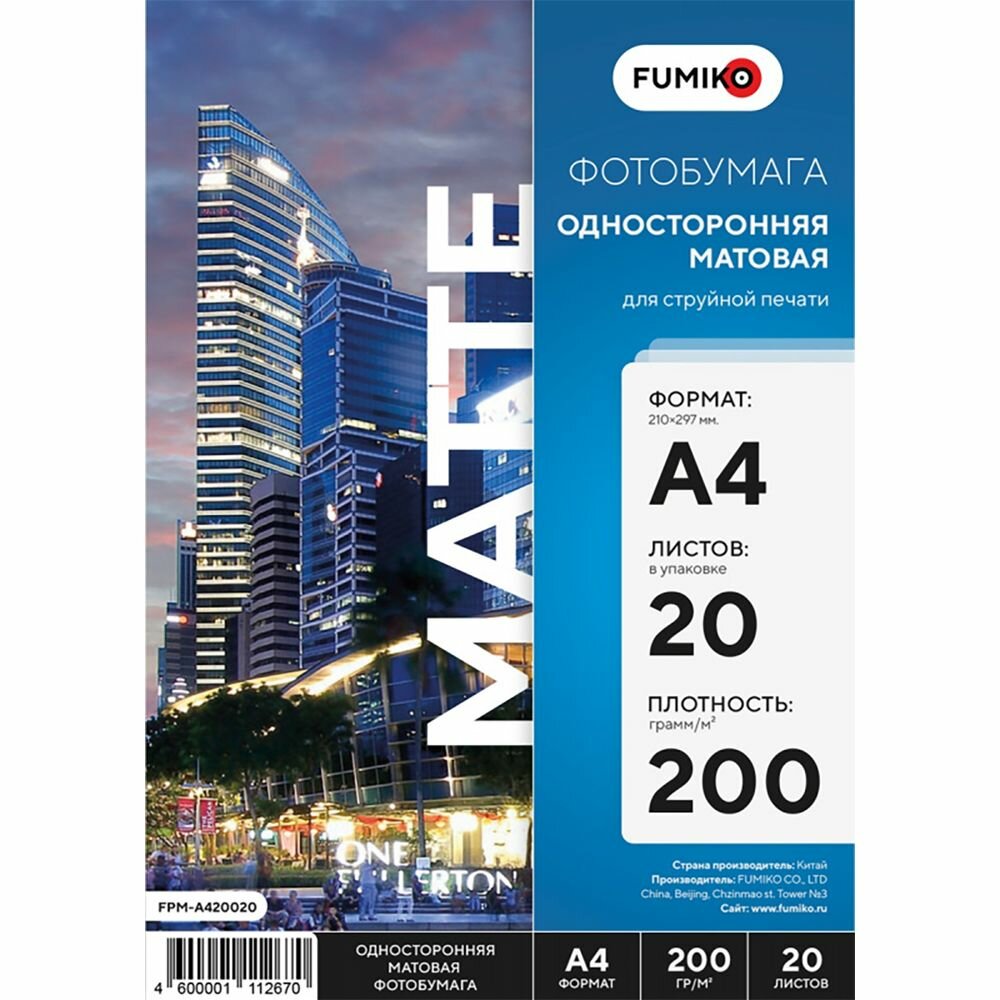 Купить Фотобумага FUMIKO матовая односторонняя 200 г, А4, 20 листов