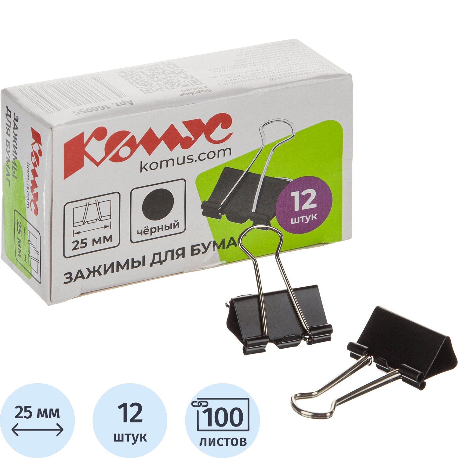 Зажимы для бумаг 25мм 12шт./уп. Комус, в картонной коробке интересное: