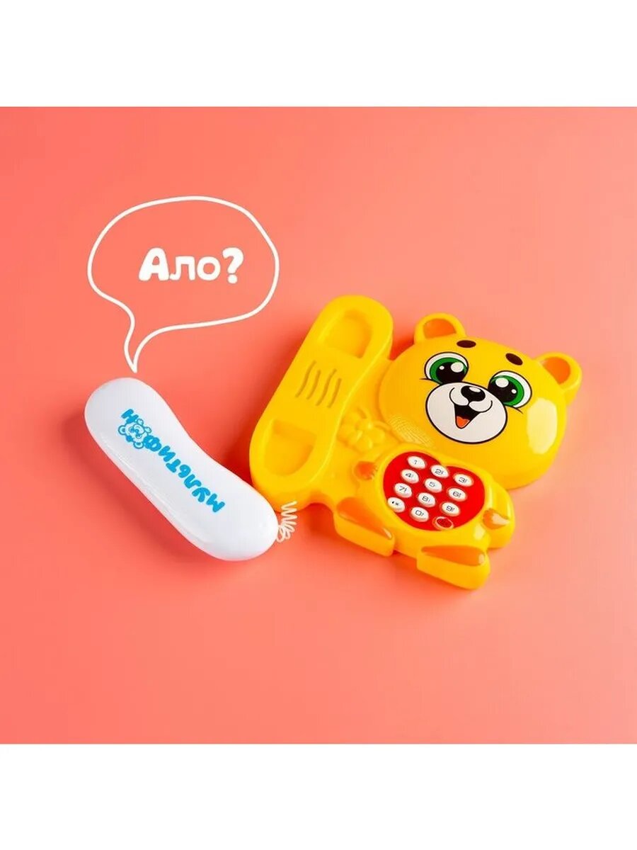 Музыкальный телефон Мультифон: Весeлый мишутка, русская озвучка, работает от батареек, цвет жeлтый 1 шт