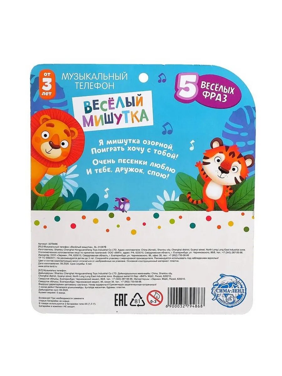 | Комплектация | Музыкальный телефон 1 шт |