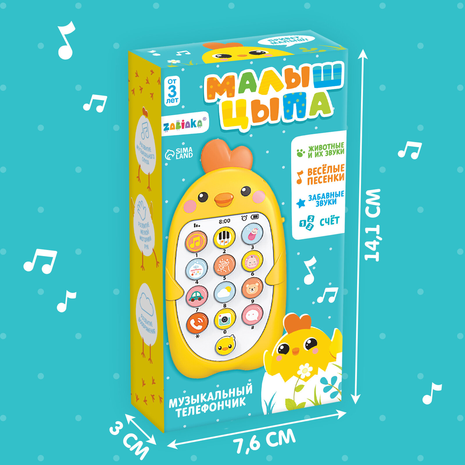 Музыкальный телефончик Малыш Цыпа, звук, цвет жёлтый