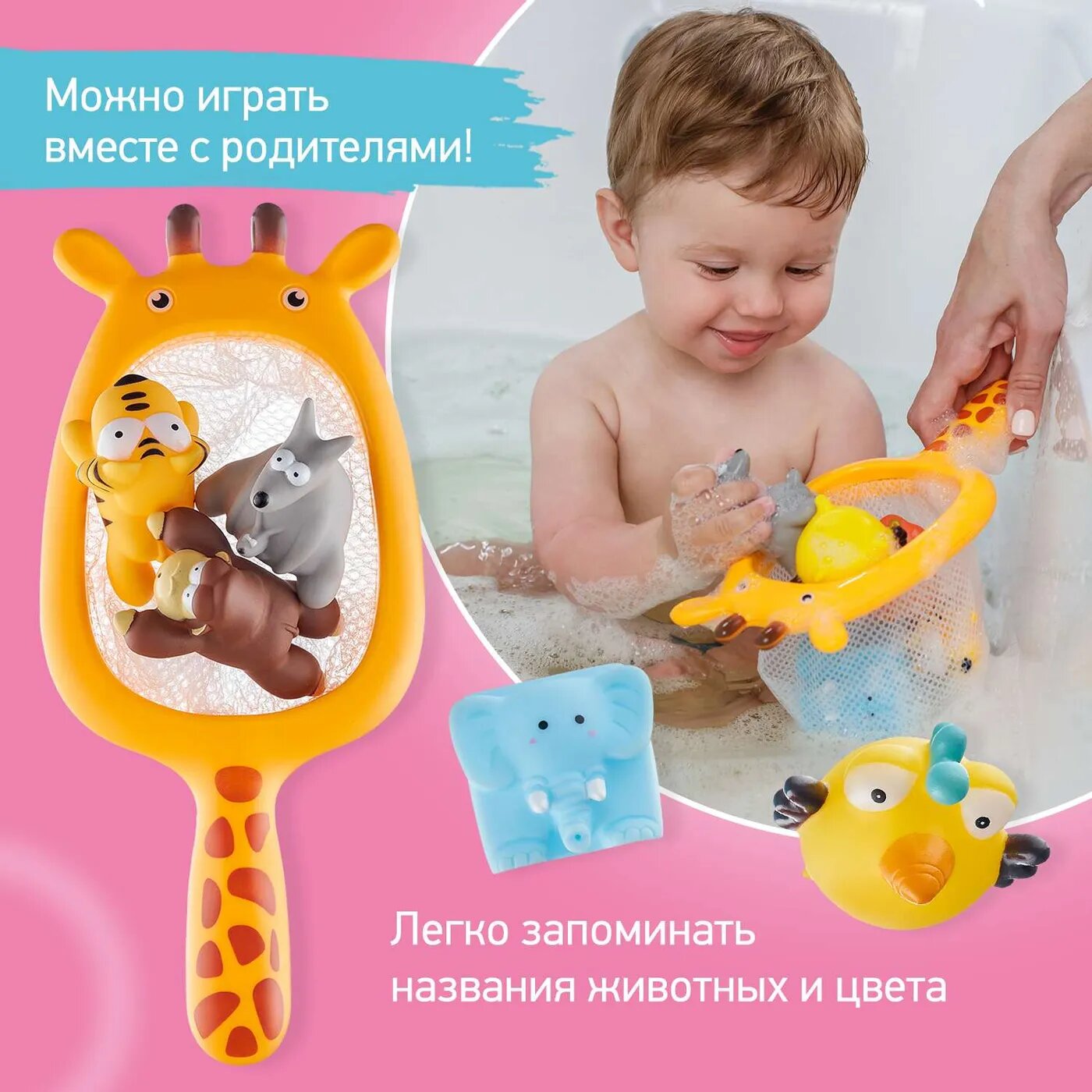 Игрушки для ванной Roxy-Kids Safari, с сачком, 6+1 шт. RRT-813 интересное: