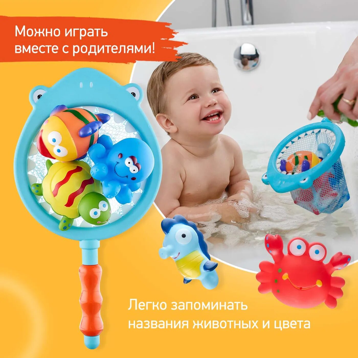 Купить ROXY-KIDS Набор игрушек для ванны с сачком (Морские Животные)