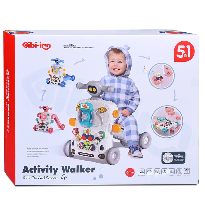 Игровой центр Oubaoloon "Учись играя", 5в1 (ходунки/самокат/каталка/столик/машина), 6039, серый интересное: