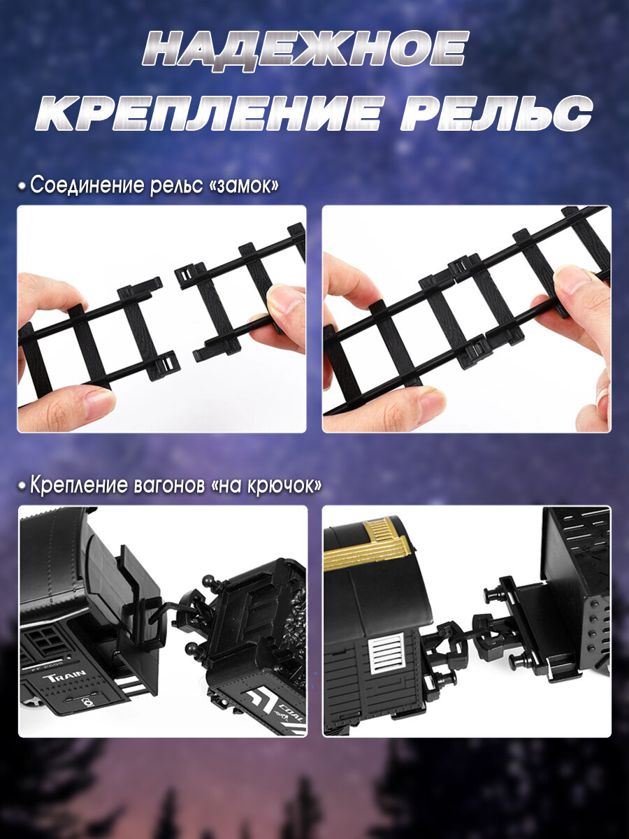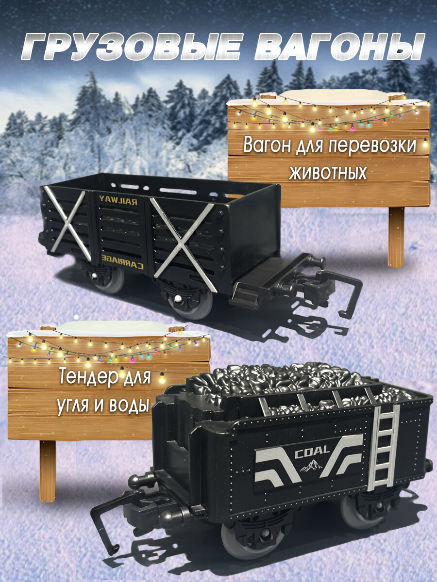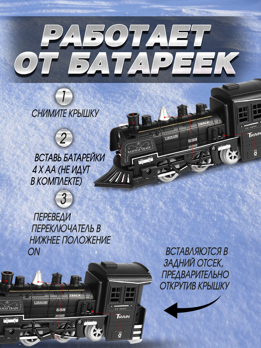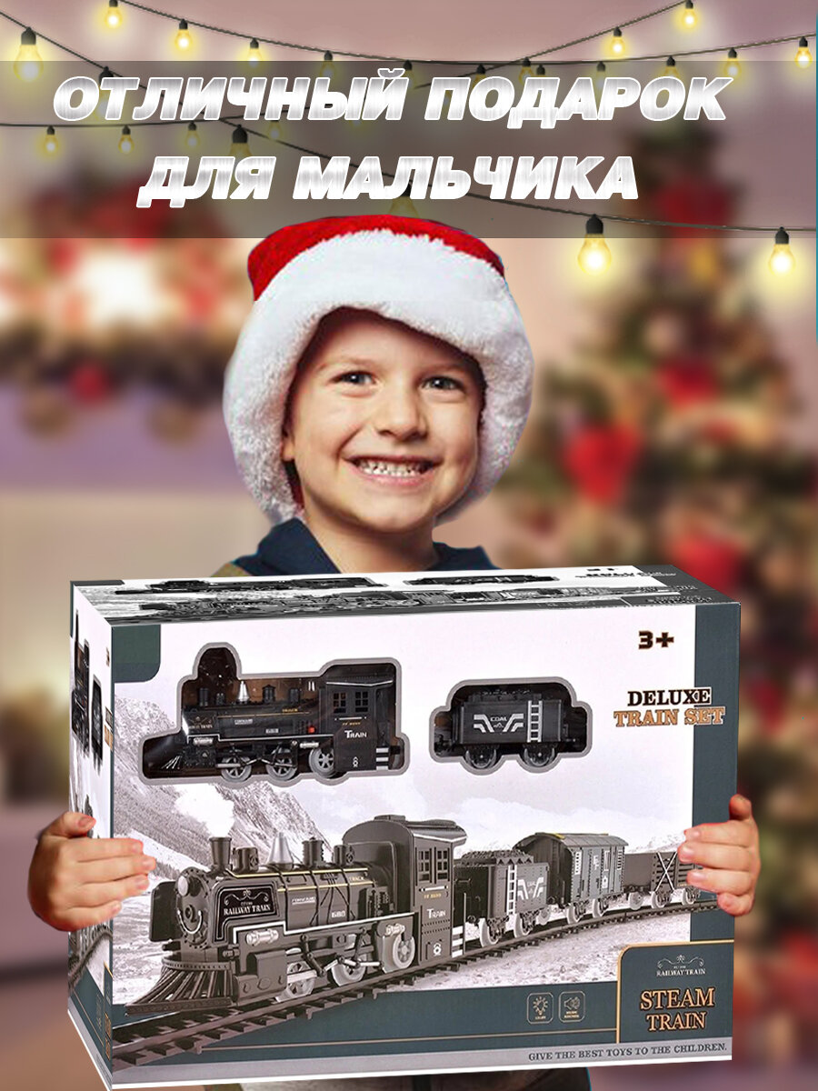 Купить Железная дорога с поездом на батарейках и вагонами со светом, звуком и паром
