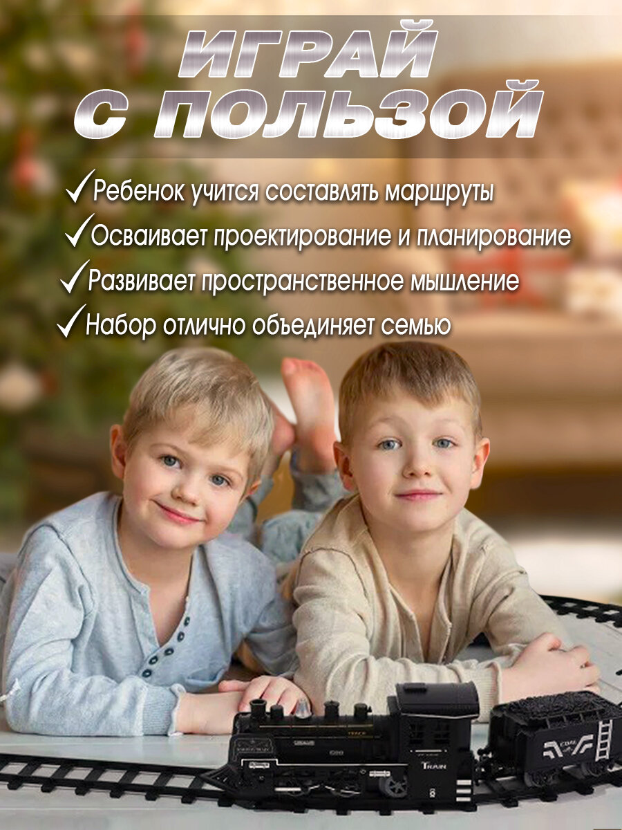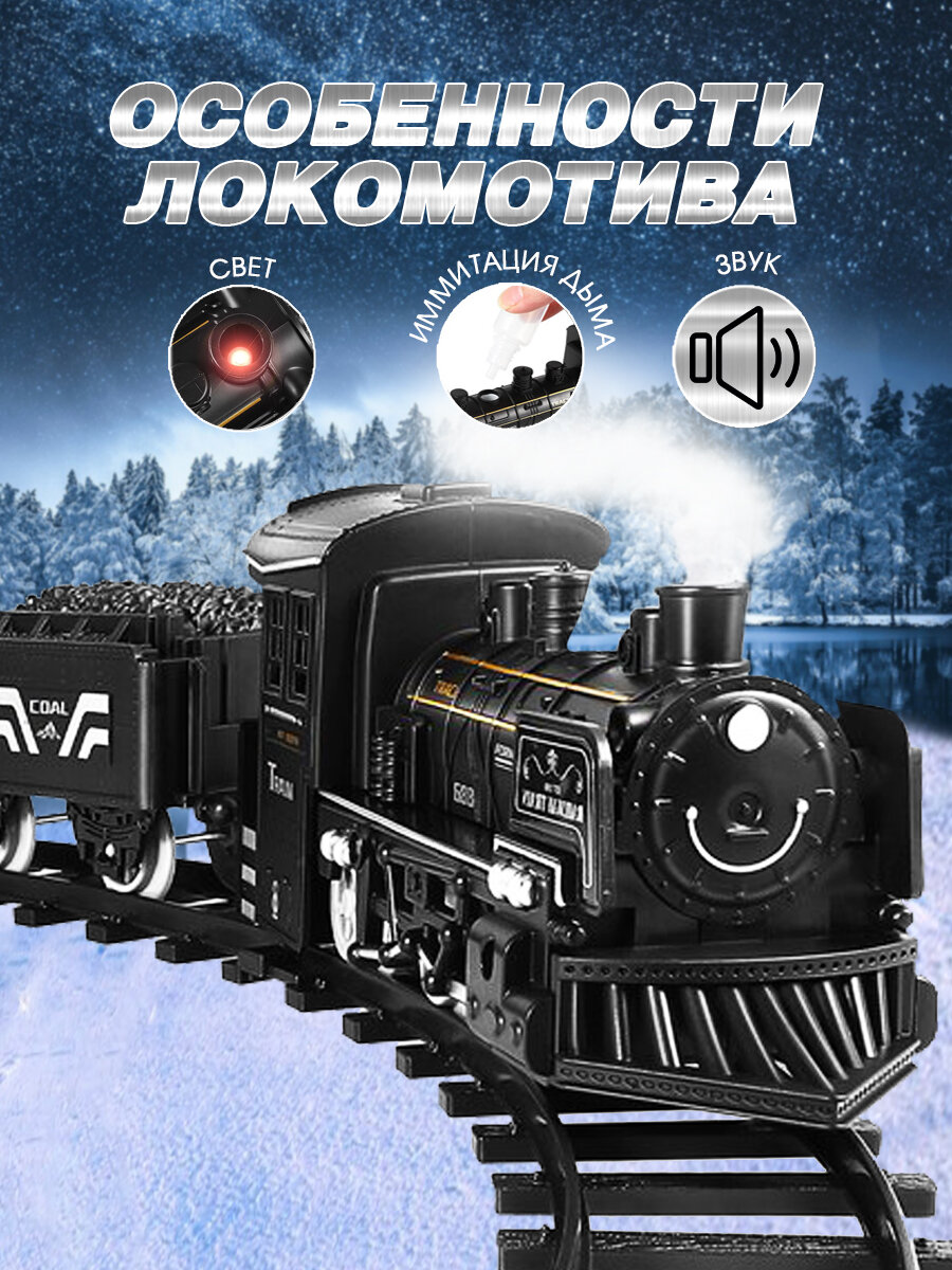 Железная дорога с поездом на батарейках и вагонами со светом, звуком и паром интересное: