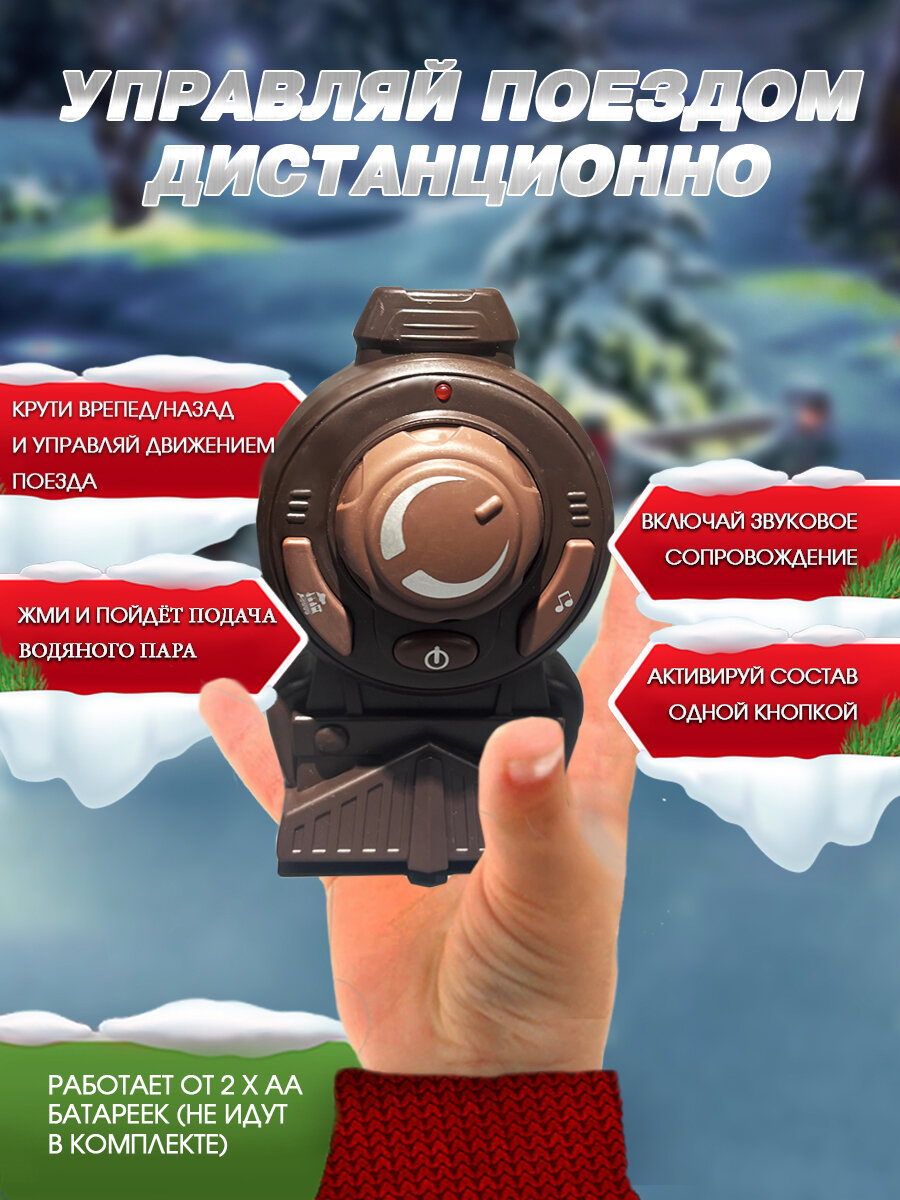 Железная дорога с поездом на пульте управления и вагонами со светом, звуком и паром