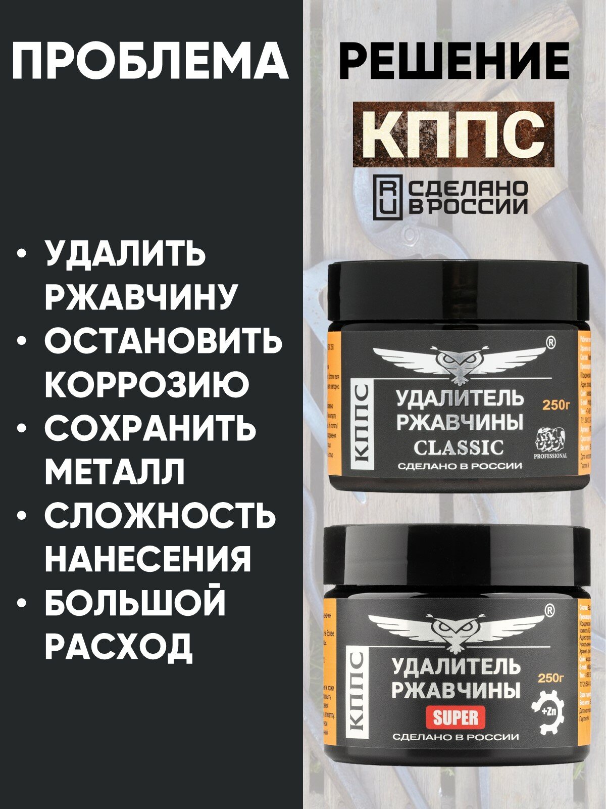 Купить Удалители ржавчины КППС: CLASSIC (250 г) + SUPER (250 г)